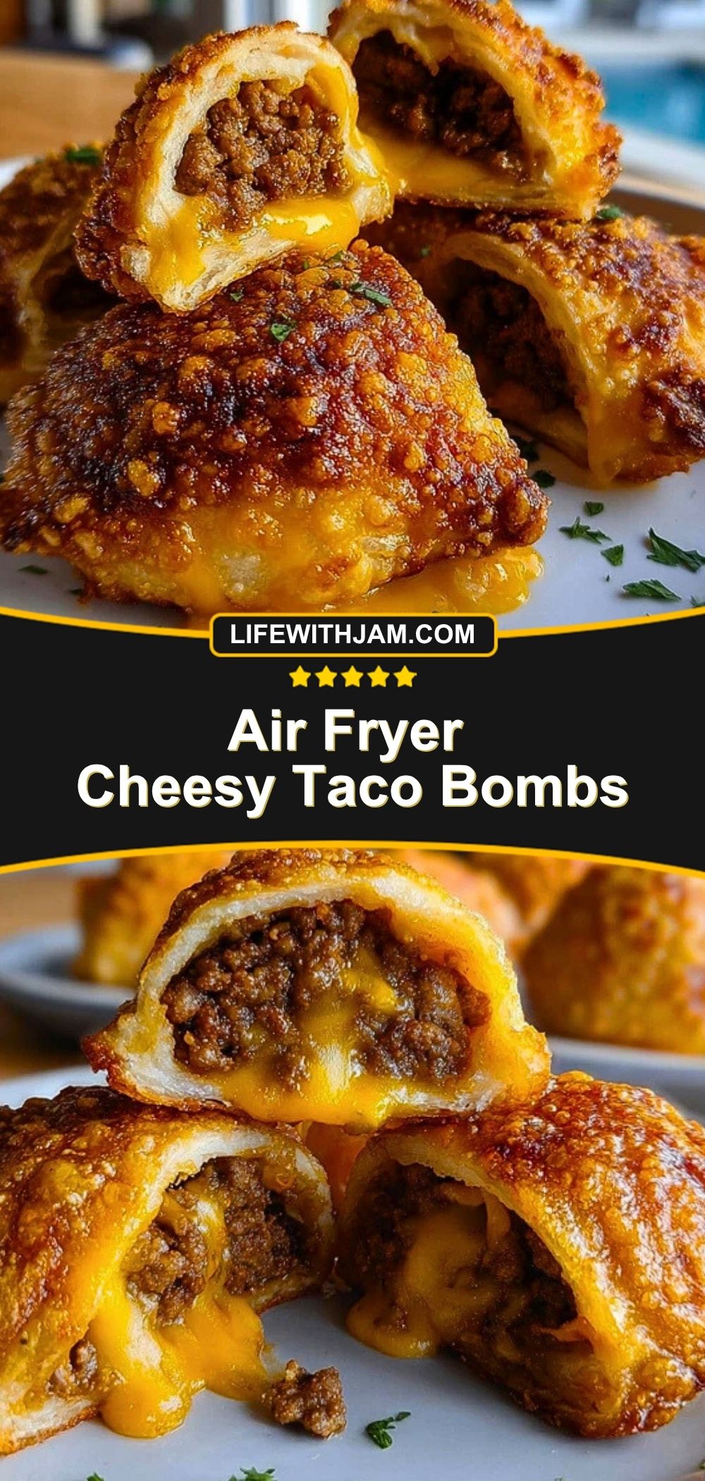 They’re ideal for quick dinners, game-day snacks, or party trays that disappear faster than you can refill them. And the best part? You only need a handful of pantry staples and an air fryer. If you’re looking for a playful twist on traditional tacos with minimal mess, these cheesy taco bombs are your new go-to.