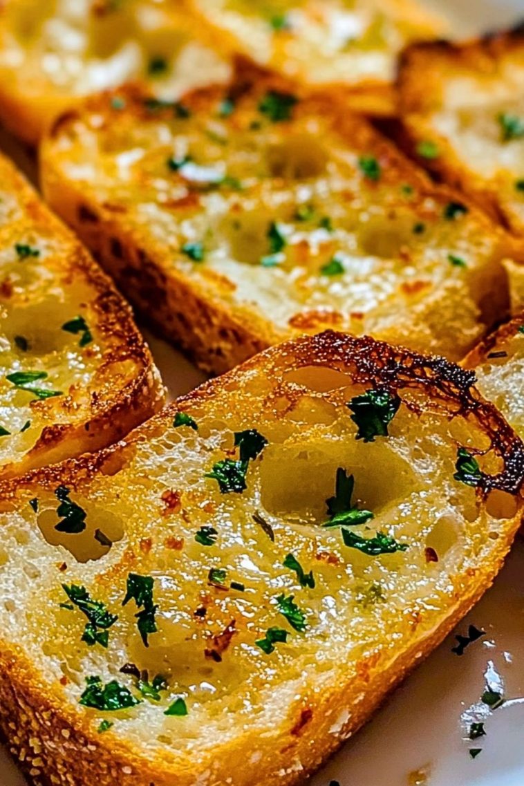 Bread: A thick-sliced baguette or Italian loaf provides the structure and texture needed to hold up to the butter mixture and heat.