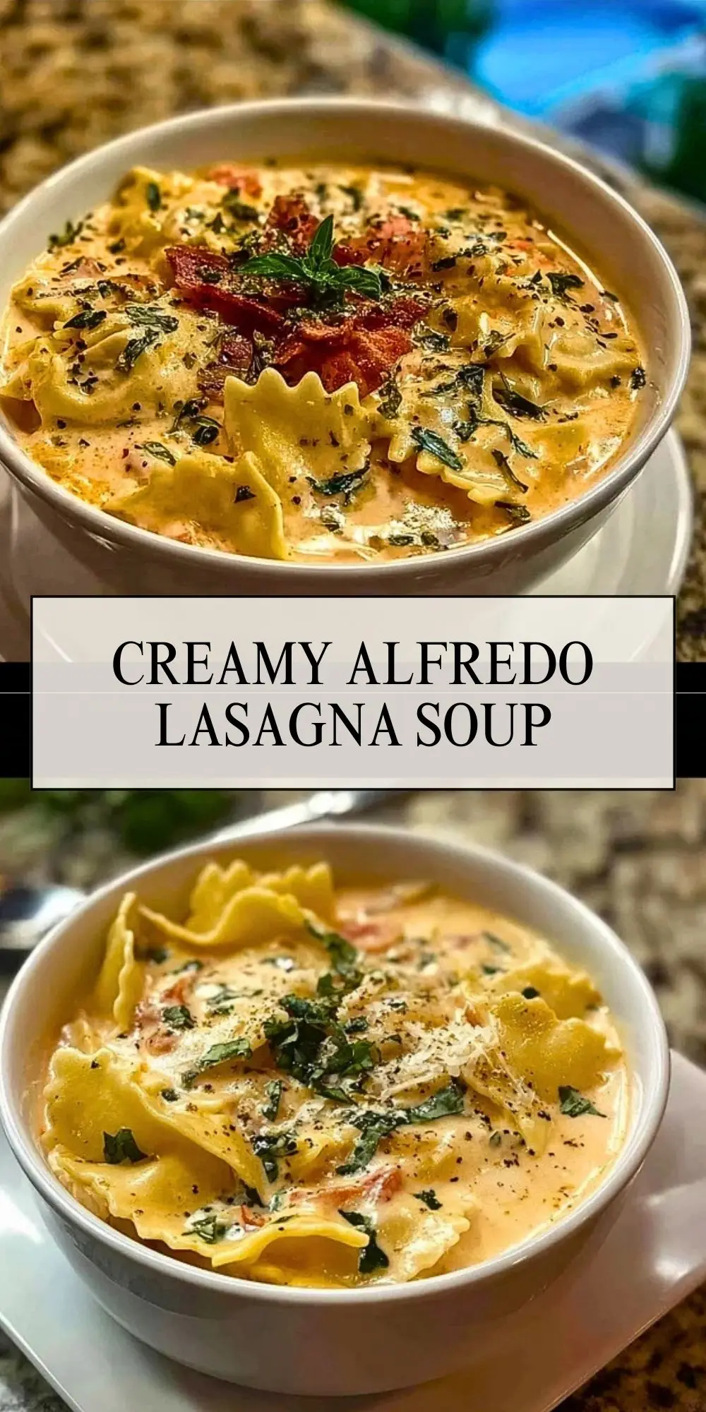 Keywords: alfredo lasagna soup, creamy lasagna soup, easy dinner