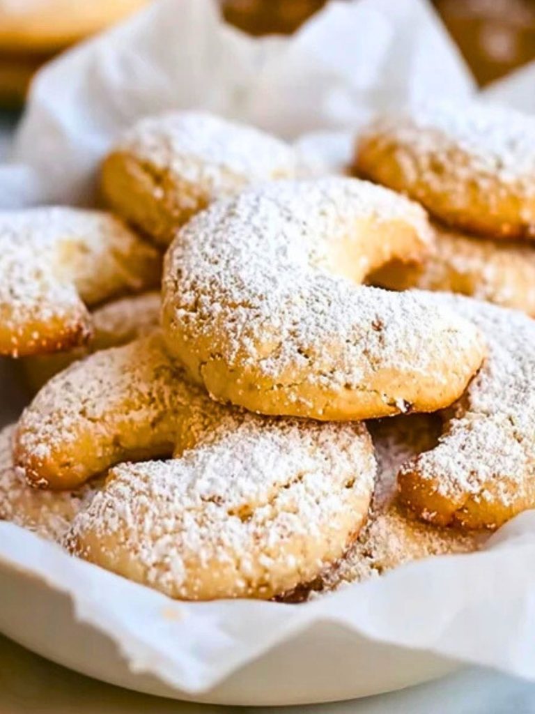 Powdered Sugar: Used both in the dough and for dusting after baking, it gives the cookies their delicate sweetness and smooth texture.