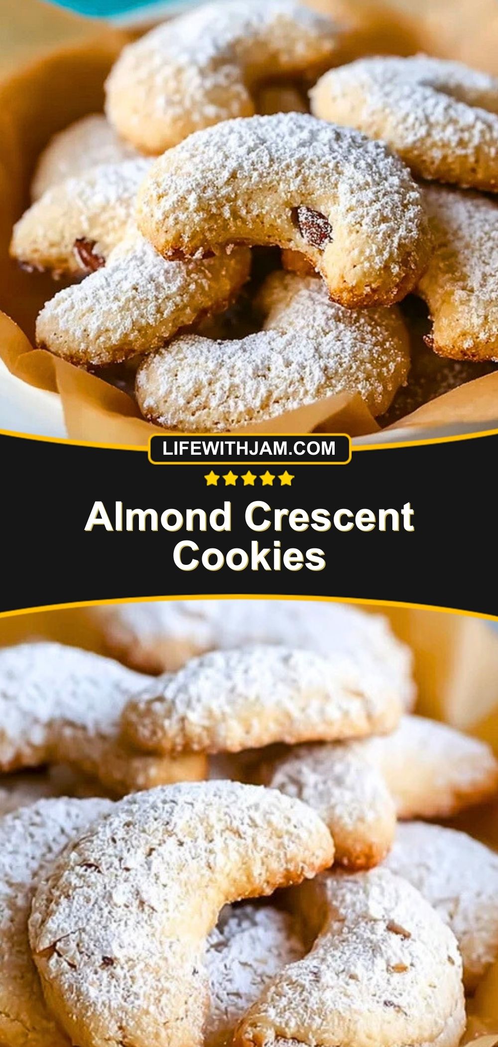 Almond Crescent Cookies are buttery, nutty, and lightly sweetened with a cloud of powdered sugar. These crescent-shaped delights are tender, melt in your mouth, and perfect for any holiday platter or teatime treat.