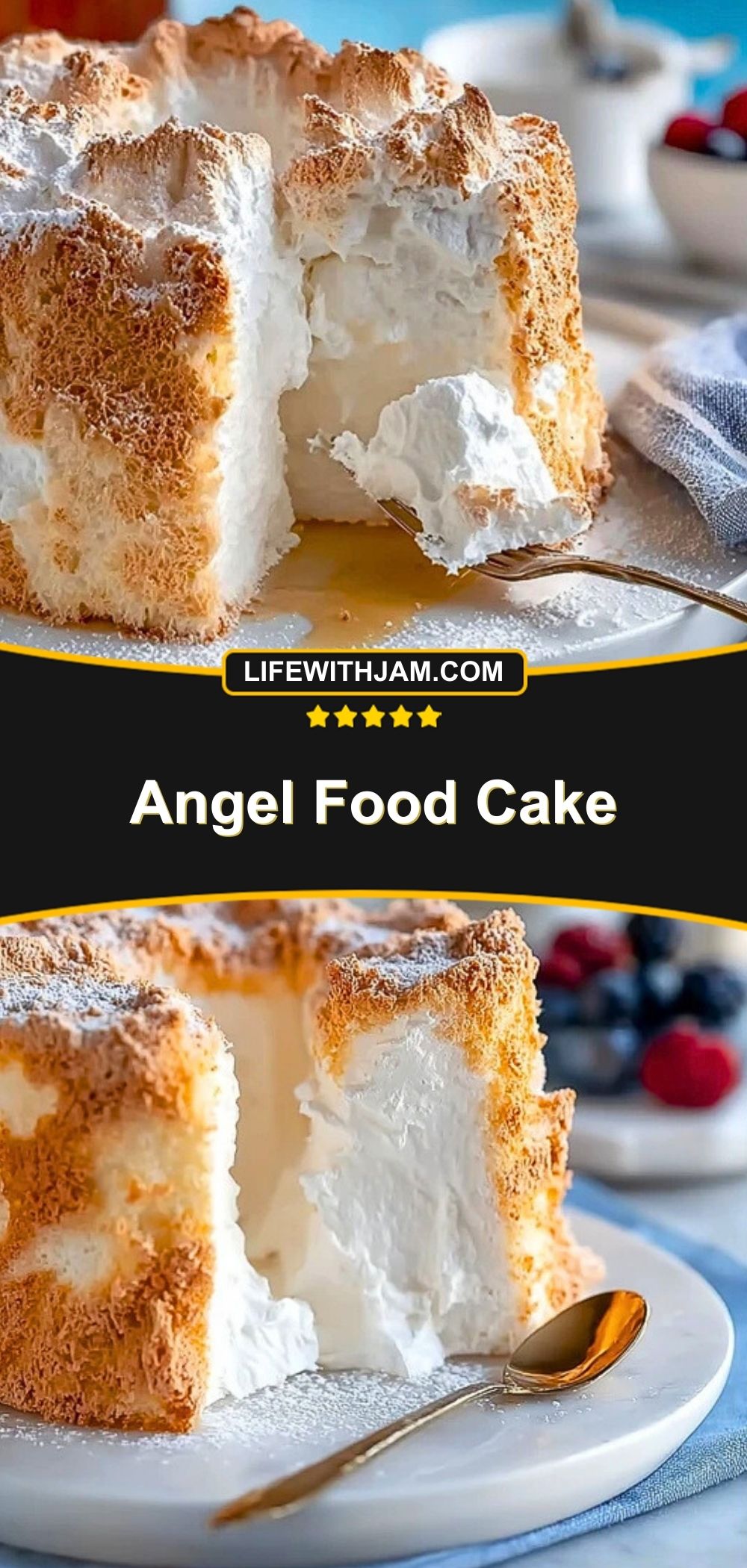 Angel Food Cake is a heavenly, fat-free dessert made from whipped egg whites, perfect for those looking for a light, fluffy sweet treat. With a delicate crumb and a golden crust, this cake pairs beautifully with fruit, whipped cream, or simply as-is. It’s elegant enough for celebrations and simple enough for everyday baking.