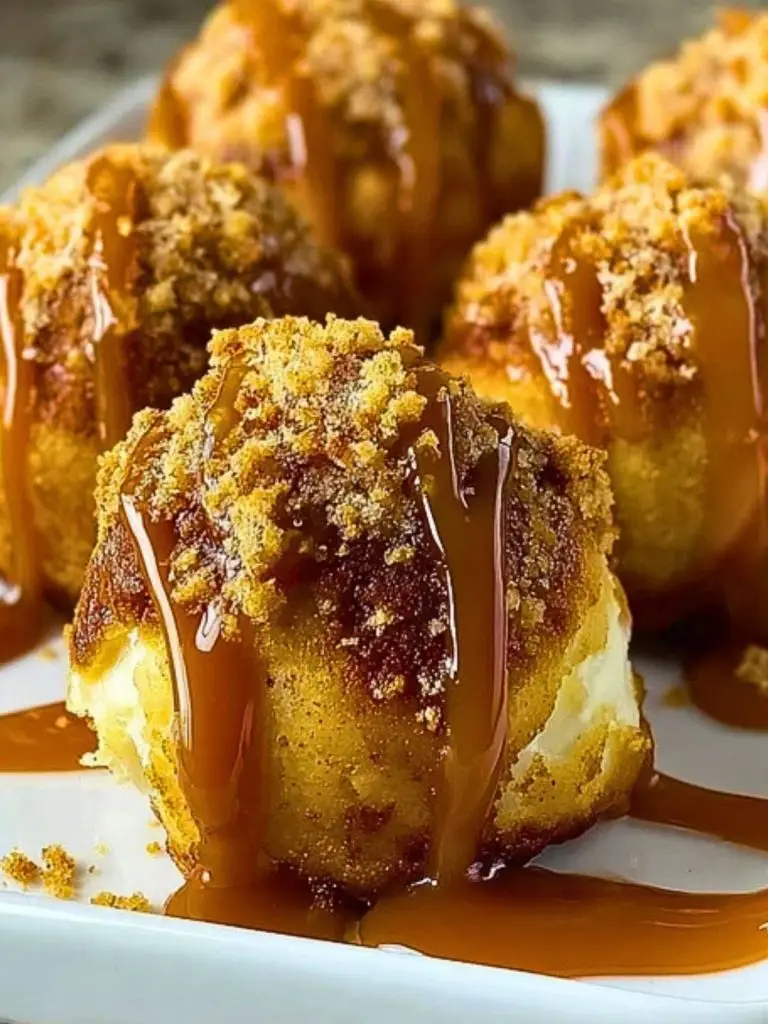 Golden, flaky Apple Caramel Bombs filled with spiced apple chunks and optionally creamy centers, rolled in buttery graham crumbs and finished with a glossy caramel drizzle. A cozy, comforting dessert that’s surprisingly simple to make and perfect for sharing.