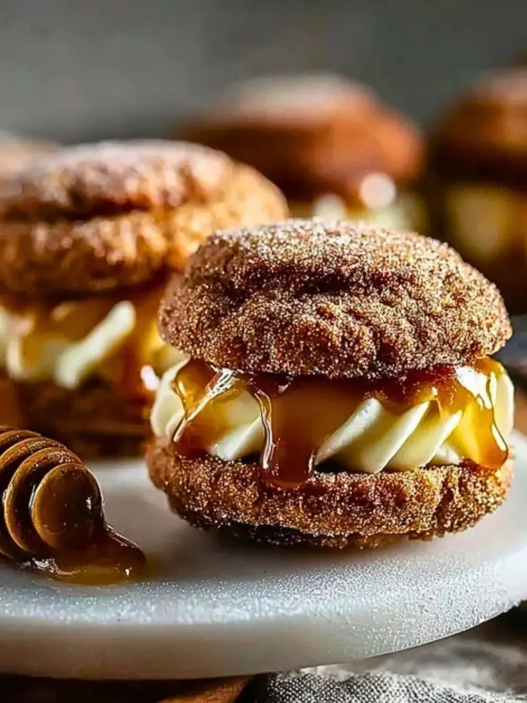 These Apple Cider Whoopie Pie Cookies with Caramel are like little bites of autumn wrapped in a soft, spiced sandwich. Two cinnamon-sugar apple cider cookies cradle a swirl of tangy cream cheese frosting, all drizzled with gooey, golden caramel. They taste just like your favorite fall drink, transformed into a decadent dessert.