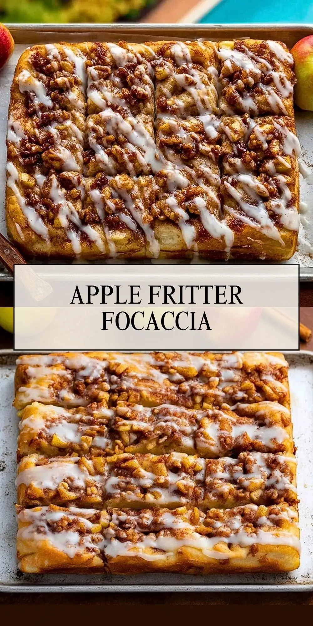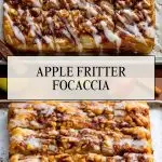 Apple Fritter Focaccia combines the best of two classics—pillowy focaccia bread and gooey cinnamon apples. Baked in a sheet pan and finished with a simple vanilla glaze, this sweet twist on a savory favorite is perfect for holiday brunches, cozy breakfasts, or dessert.