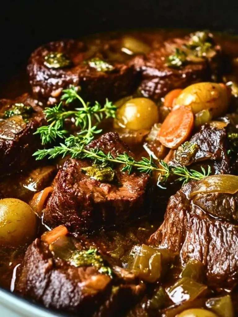 As it simmers low and slow, the beef becomes meltingly tender while the beer reduces into a slightly sweet, malty gravy that clings to every bite. It’s the kind of dish that transforms simple ingredients into something deeply satisfying. Whether you’re cooking for a cold-weather dinner party or a comforting Sunday meal, this stew is destined to become a new favorite.