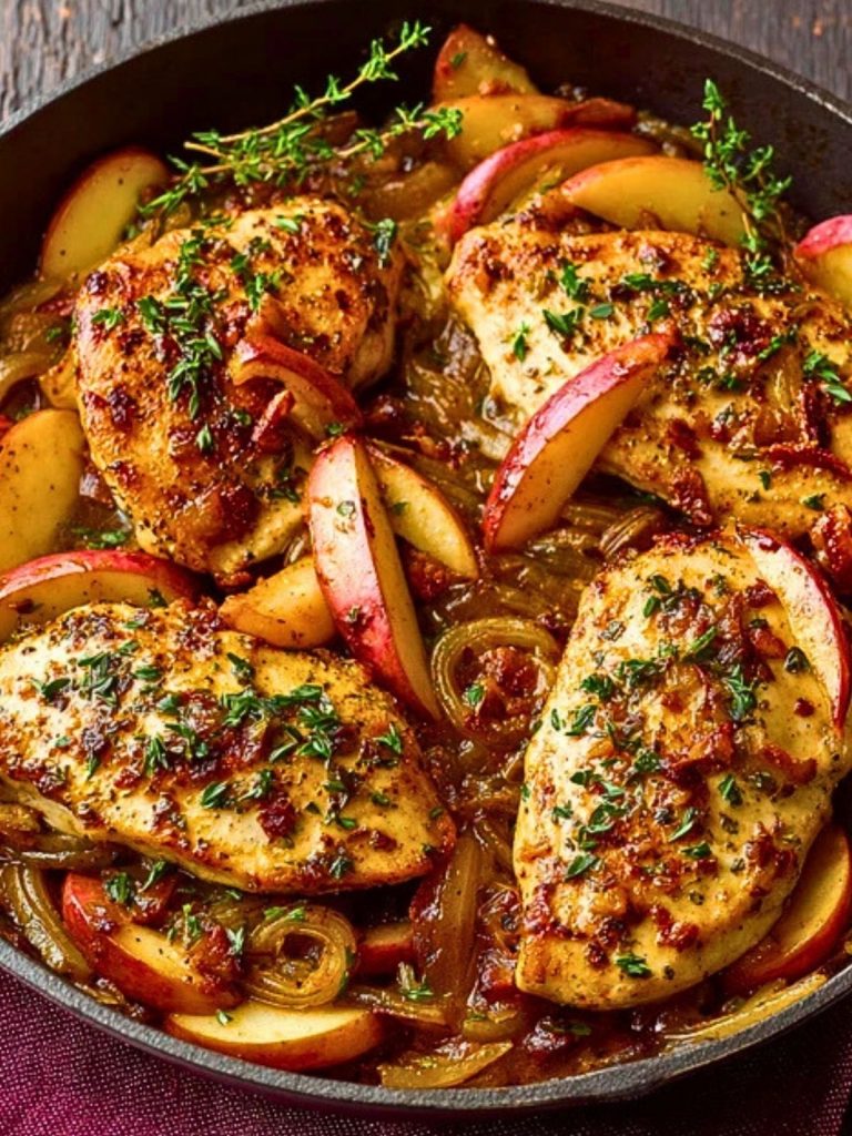 With a perfect blend of savory and sweet, this one-pan meal brings together juicy chicken breasts, tart apples, and fresh herbs in a cider-infused glaze. It’s the kind of dish that’s rustic enough for a weeknight but stunning enough for guests. Each bite delivers a bit of smoky bacon, tender onions, and those apple slices that go slightly soft and syrupy in the pan.