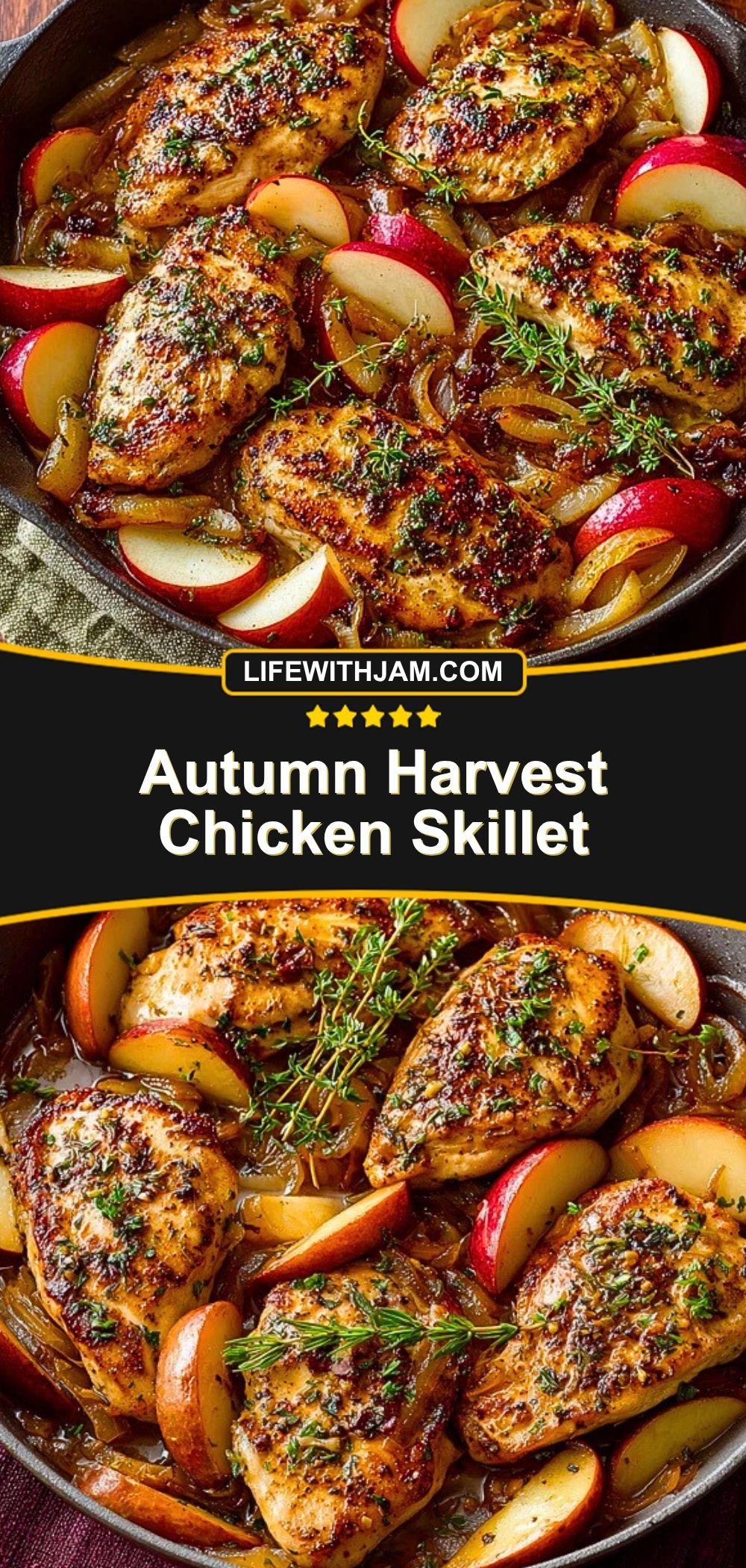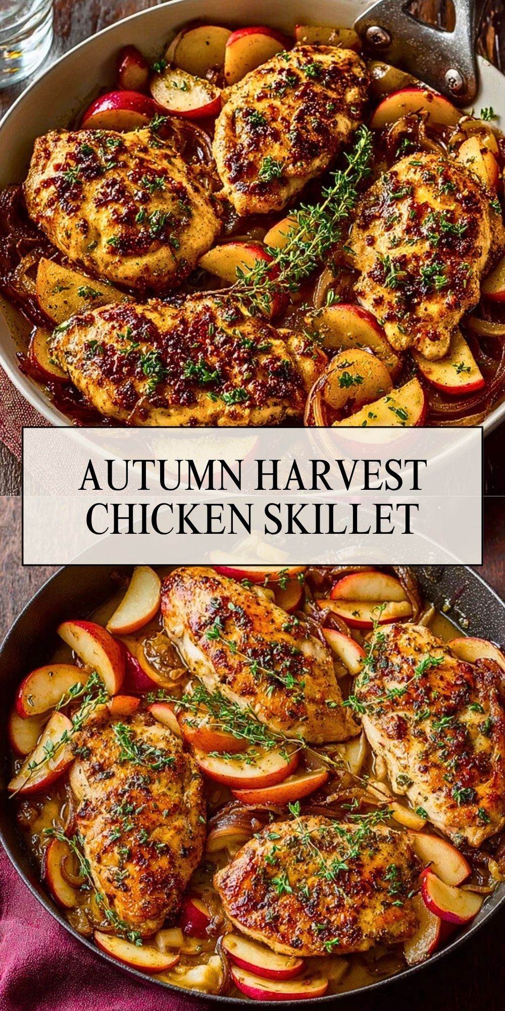 Nothing says cozy comfort like the aroma of sweet apples, caramelized onions, and golden-seared chicken wafting from a skillet. This Autumn Harvest Chicken Skillet is everything you want in a fall dinner: hearty, warming, and layered with flavors that remind you of crisp air and changing leaves.