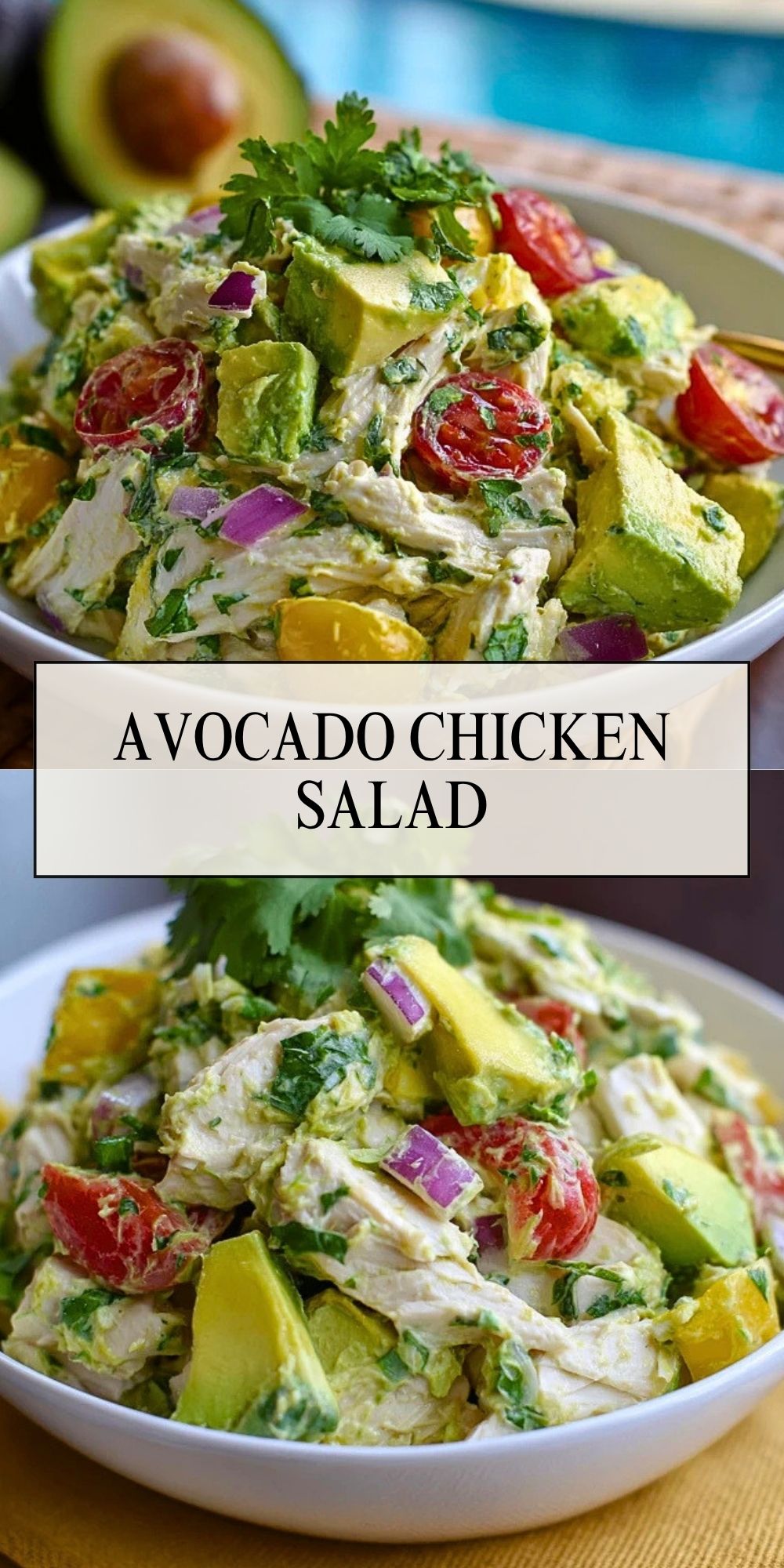 This Avocado Chicken Salad is a quick lunch, easy dinner, and healthy snack all in one fresh, creamy bowl. Made with tender chicken, ripe avocado, juicy tomatoes, red onion, cilantro, and lime, it is an easy recipe packed with flavor and perfect for lunch ideas, dinner ideas, meal prep, and simple food ideas when you want something satisfying without a lot of work.