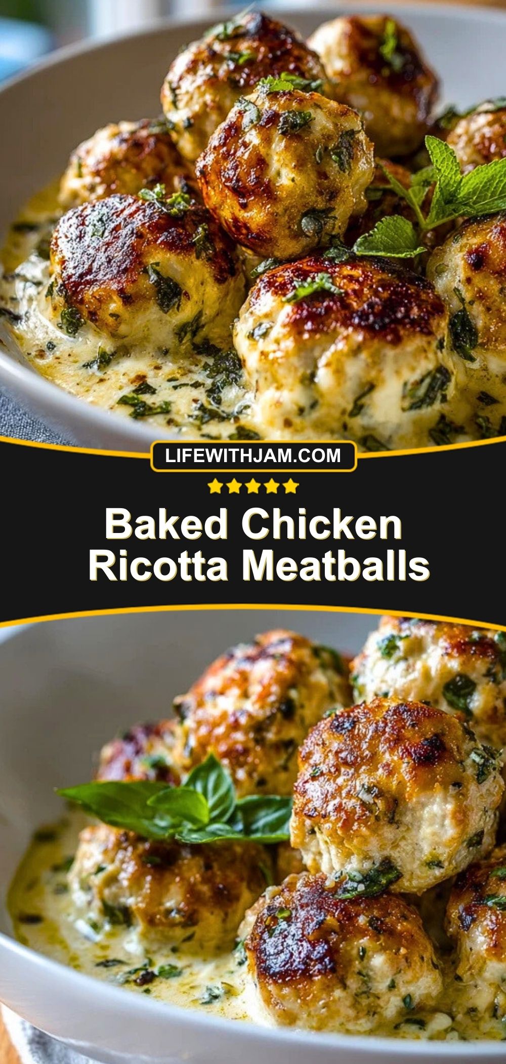 Juicy, tender, and loaded with creamy flavor, these Baked Chicken Ricotta Meatballs are everything you want in a comfort food with a gourmet twist. Instead of traditional beef, these meatballs feature ground chicken paired with luscious ricotta cheese for a lighter yet rich bite. They bake beautifully golden on the outside while staying incredibly moist and soft inside.