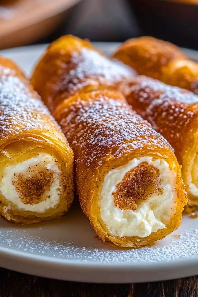 Crispy, sweet, and filled with tangy cream cheese, these oven-baked roll-ups are the ultimate comfort treat. With a buttery cinnamon-sugar crust and a creamy interior, they’re perfect for breakfast, brunch, or dessert. Quick to prepare and a joy to serve!