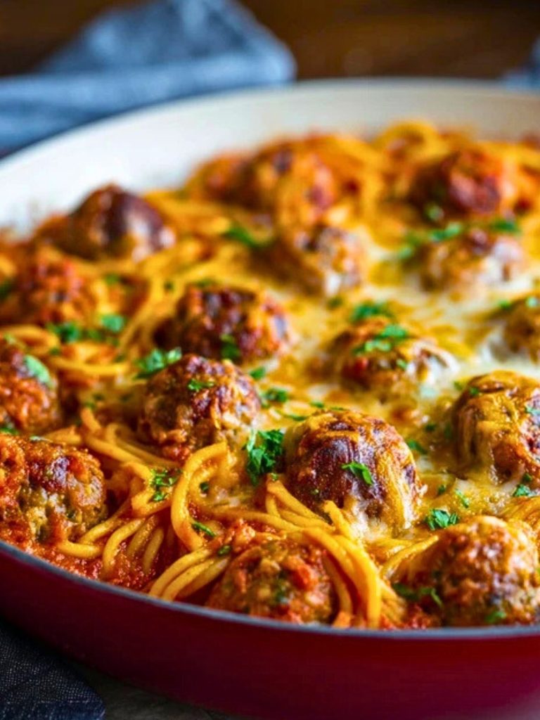 This Baked Spaghetti Meatballs recipe combines saucy spaghetti, juicy homemade meatballs, and melty mozzarella cheese for a comforting, crowd-pleasing meal. Perfect for family dinners, potlucks, or weekly meal prep—it’s hearty, easy to make, and just as delicious the next day.