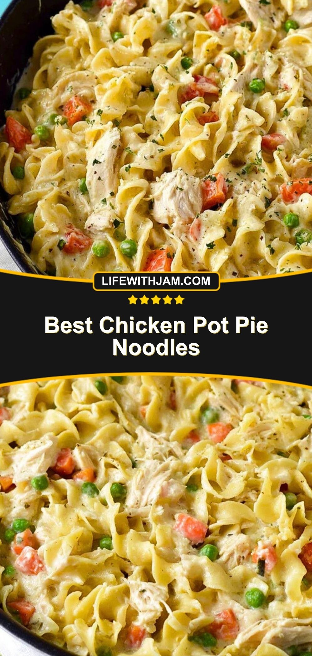 This Best Chicken Pot Pie Noodles recipe is everything you love about a classic pot pie — creamy sauce, tender chicken, sweet peas, and hearty carrots — all tossed together with egg noodles instead of baked into a crust. It’s rich, cozy, and so easy to make in one pan, making it a favorite for busy weeknights or when you just need a warm bowl of comfort.
