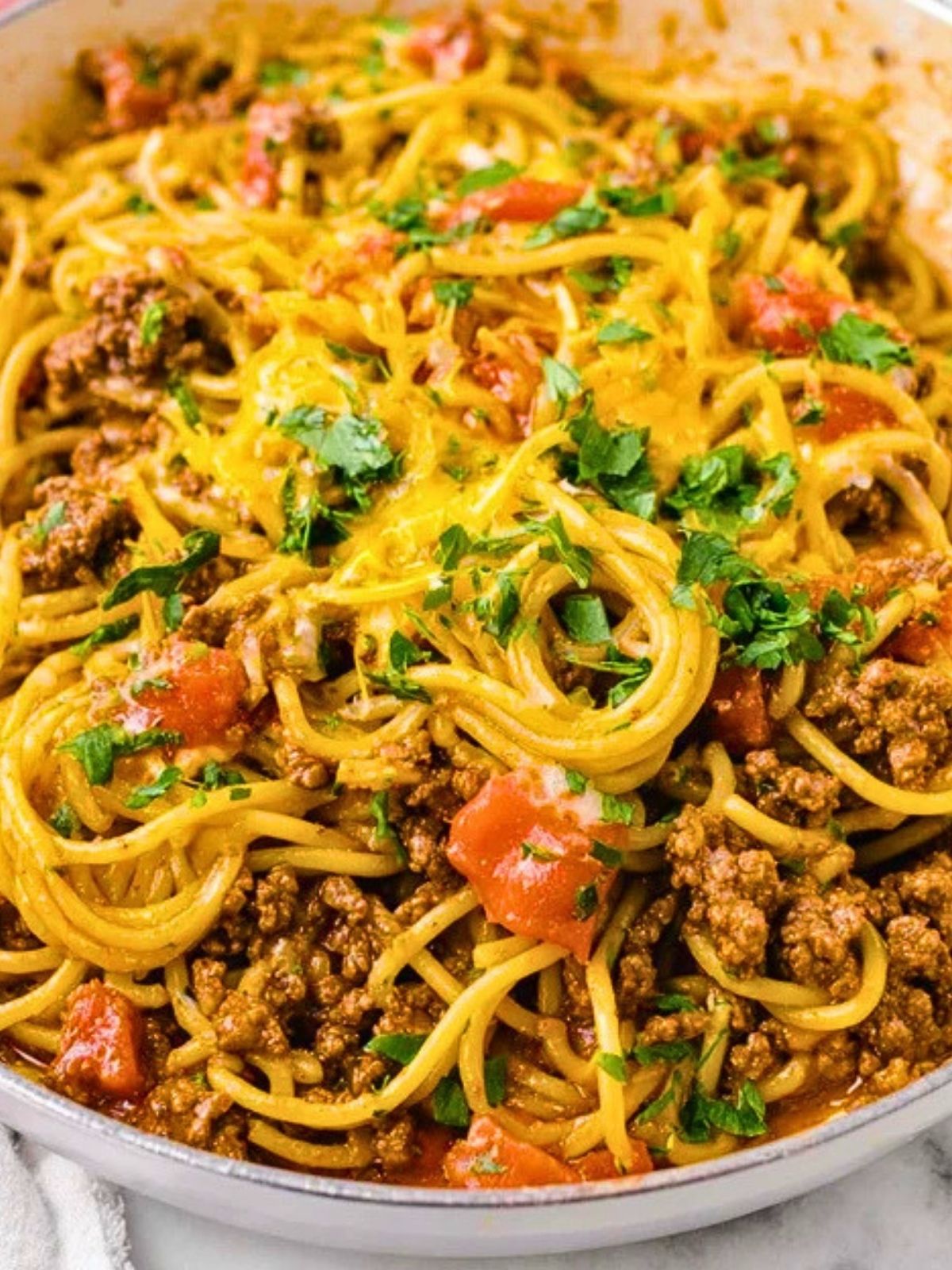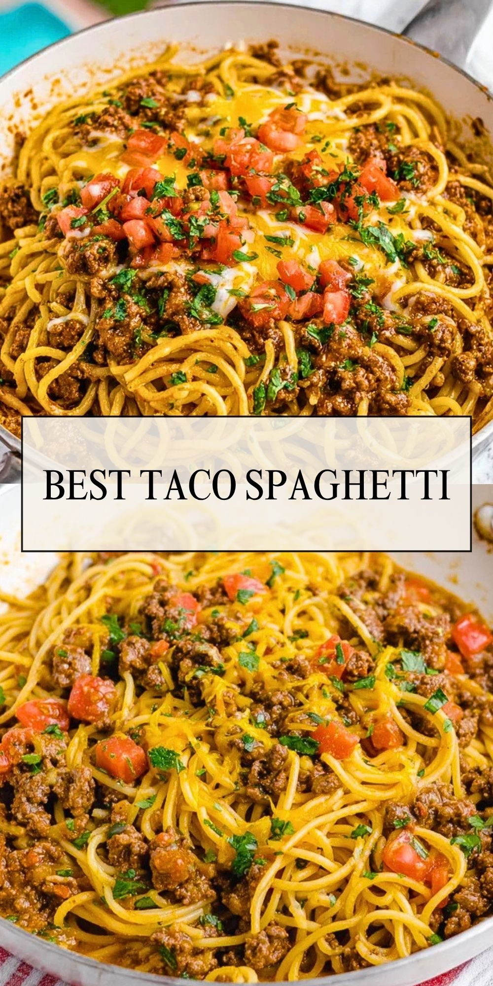 Best Taco Spaghetti is the kind of dinner that disappears fast. It brings together tender spaghetti, seasoned ground beef, tomatoes, melty cheese, and taco flavor in one skillet for a meal that feels cozy, hearty, and full of bold weeknight comfort.