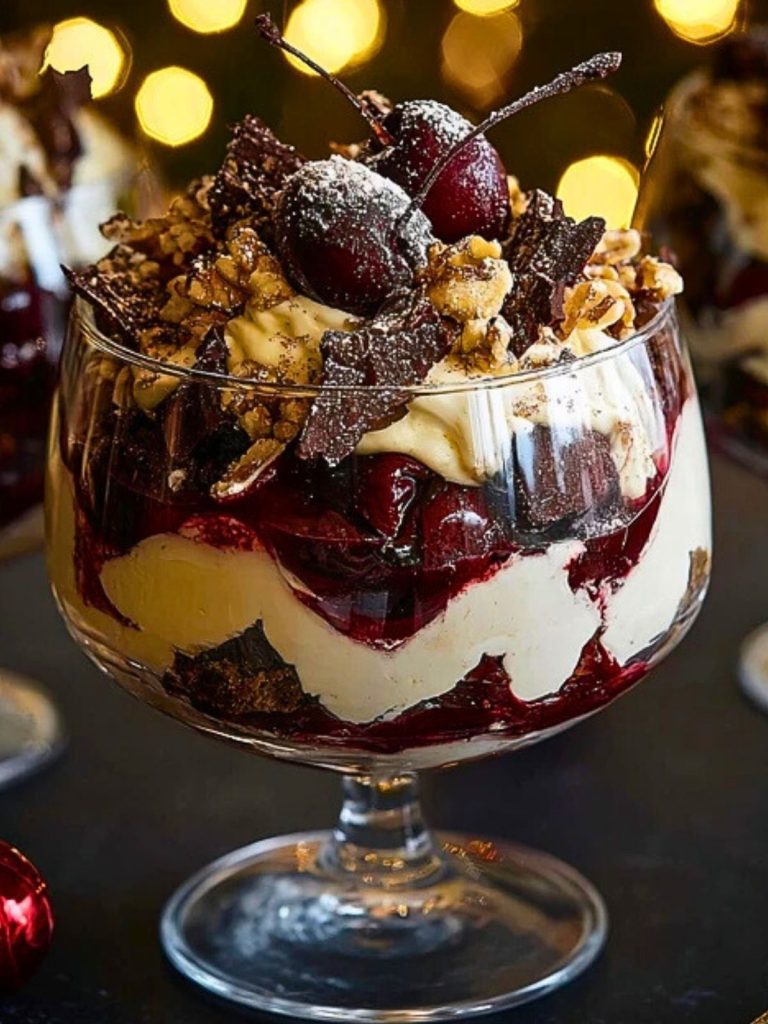 Whether you’re hosting a cozy family gathering or heading to a holiday potluck, this trifle is the kind of dessert that disappears quickly. It celebrates the classic Black Forest cake flavors with a modern twist: no baking layers, no fussy assembly—just gorgeous, spoonable bliss with minimal prep.