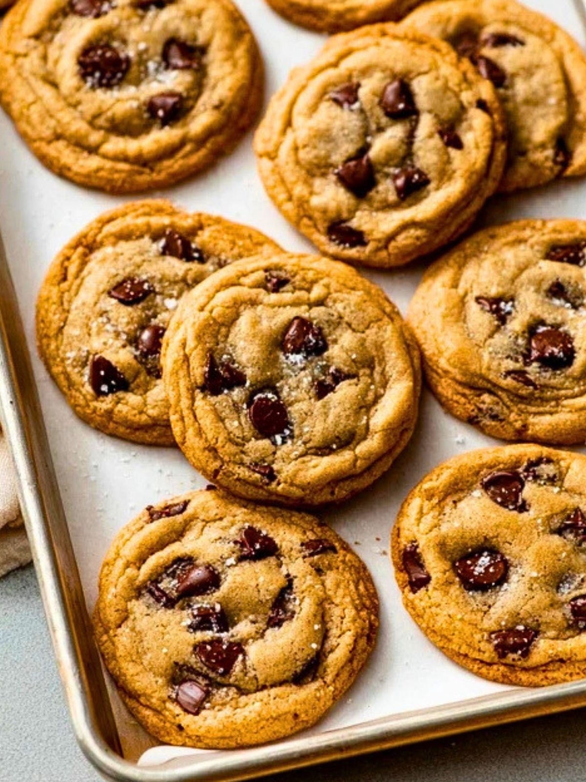 11. Sprinkle with flaky sea salt if desired and let the cookies cool on the baking sheet for 5 minutes before moving them to a wire rack.