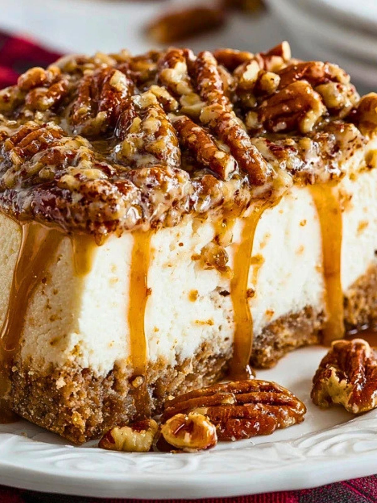 This is the kind of cheesecake that fits right in at holiday dinners, fall gatherings, Sunday suppers, or any time you want a dessert that looks impressive but is still completely doable in a home kitchen. The contrast of silky cheesecake, crunchy pecans, and warm buttery flavor makes it feel cozy, elegant, and absolutely worth the chill time.