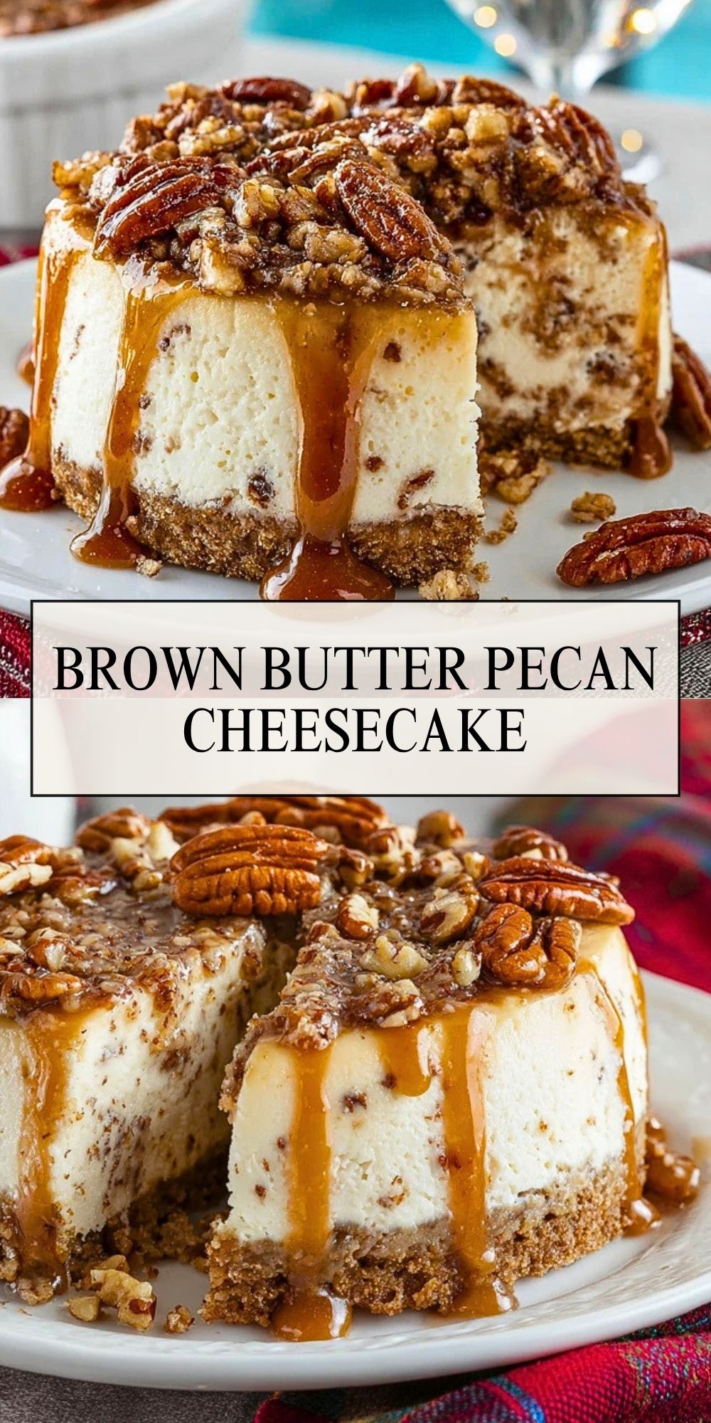 📌 Save this Brown Butter Pecan Cheesecake to your Pinterest dessert board so you can come back to it whenever you need a holiday dessert, fall dessert, or make-ahead cheesecake idea.