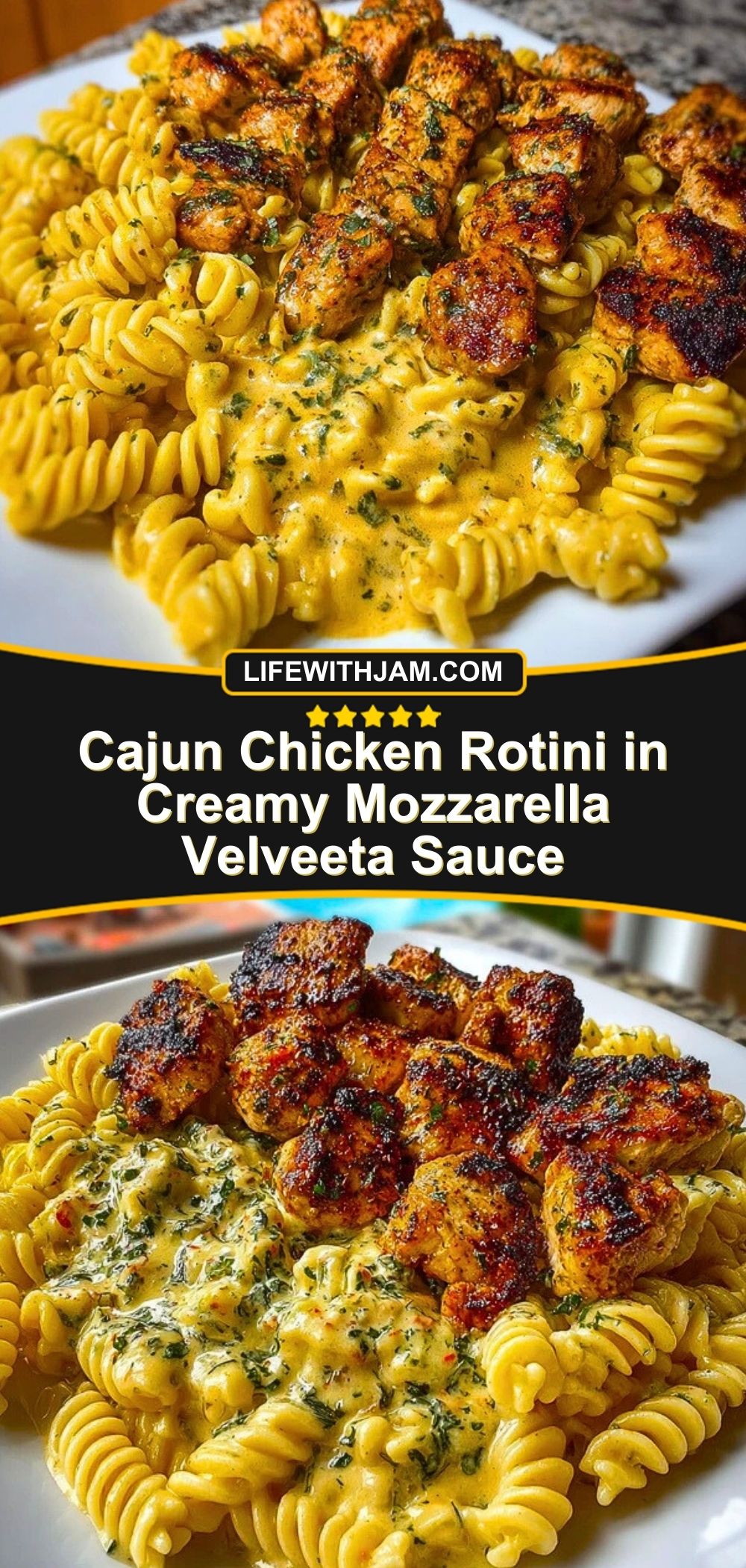 Cajun Chicken Rotini in Creamy Mozzarella Velveeta Sauce