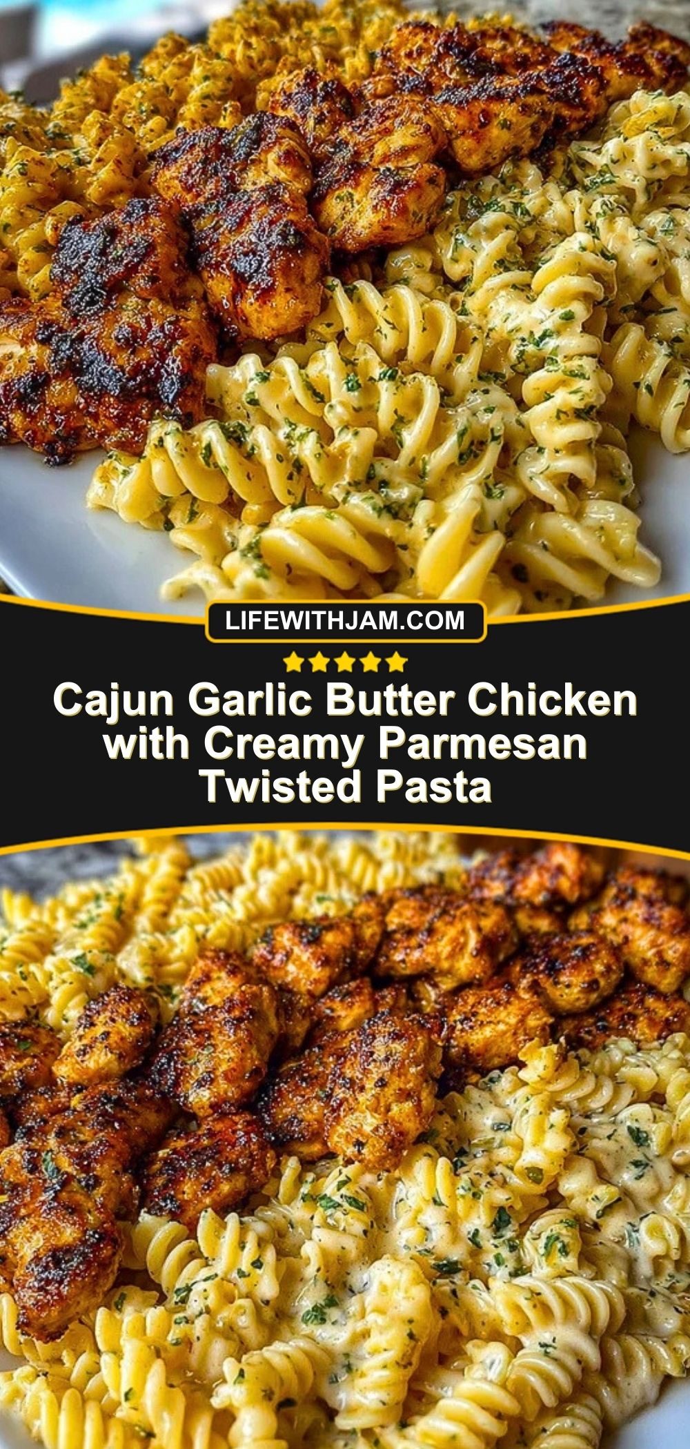 Cajun Garlic Butter Chicken with Creamy Parmesan Twisted Pasta