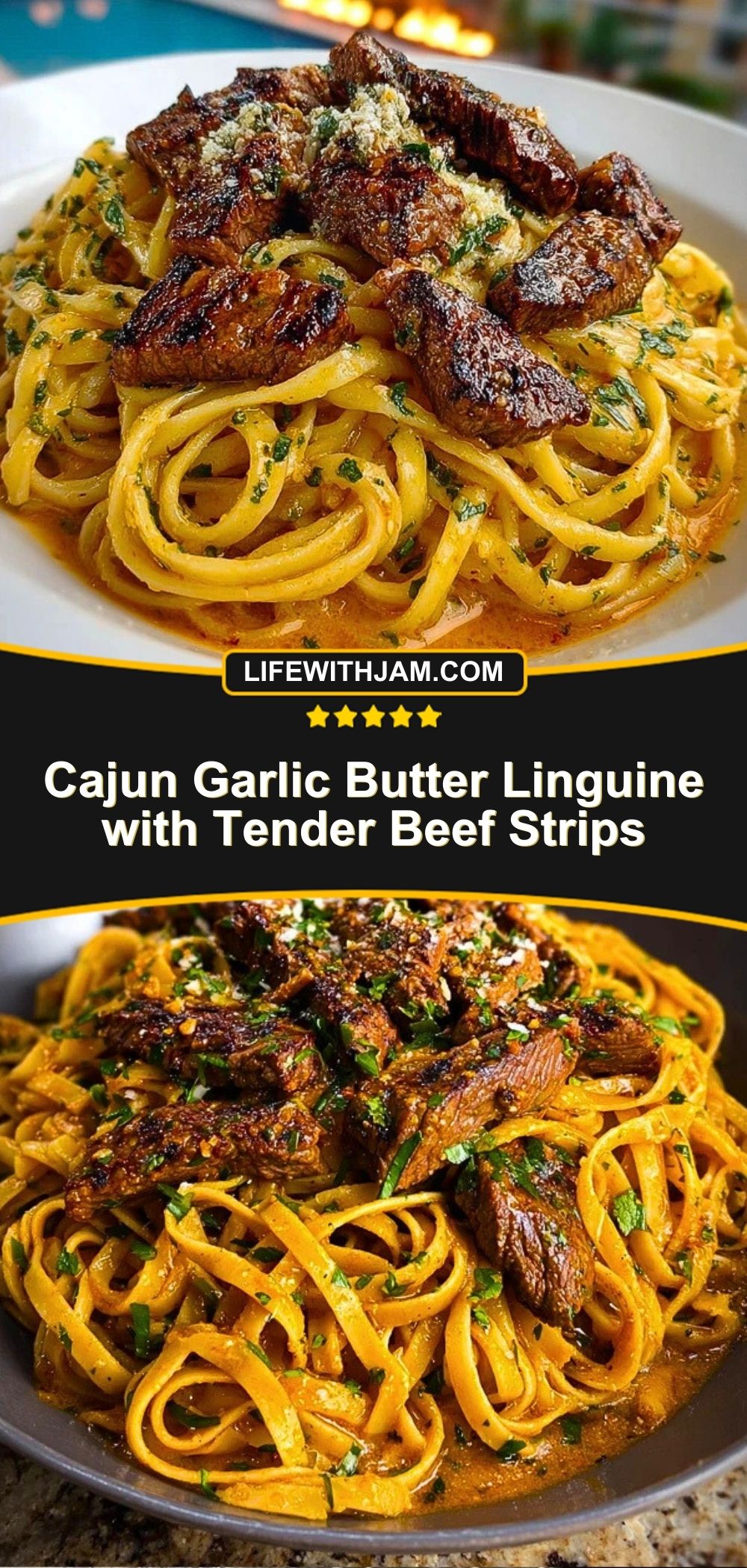 This Cajun Garlic Butter Linguine with Tender Beef Strips is a bold, buttery pasta dish packed with flavor. Tender beef strips are seared and tossed in a rich Cajun-spiced garlic butter sauce, then swirled with silky linguine. A perfect indulgent weeknight meal that comes together in under 30 minutes.