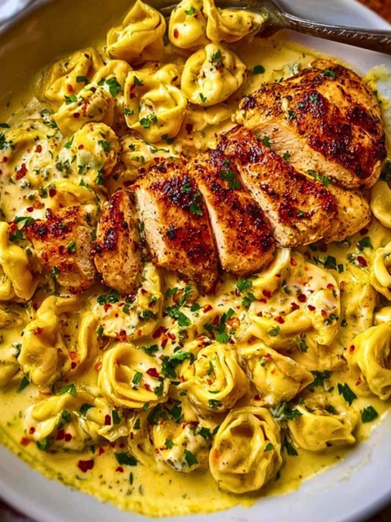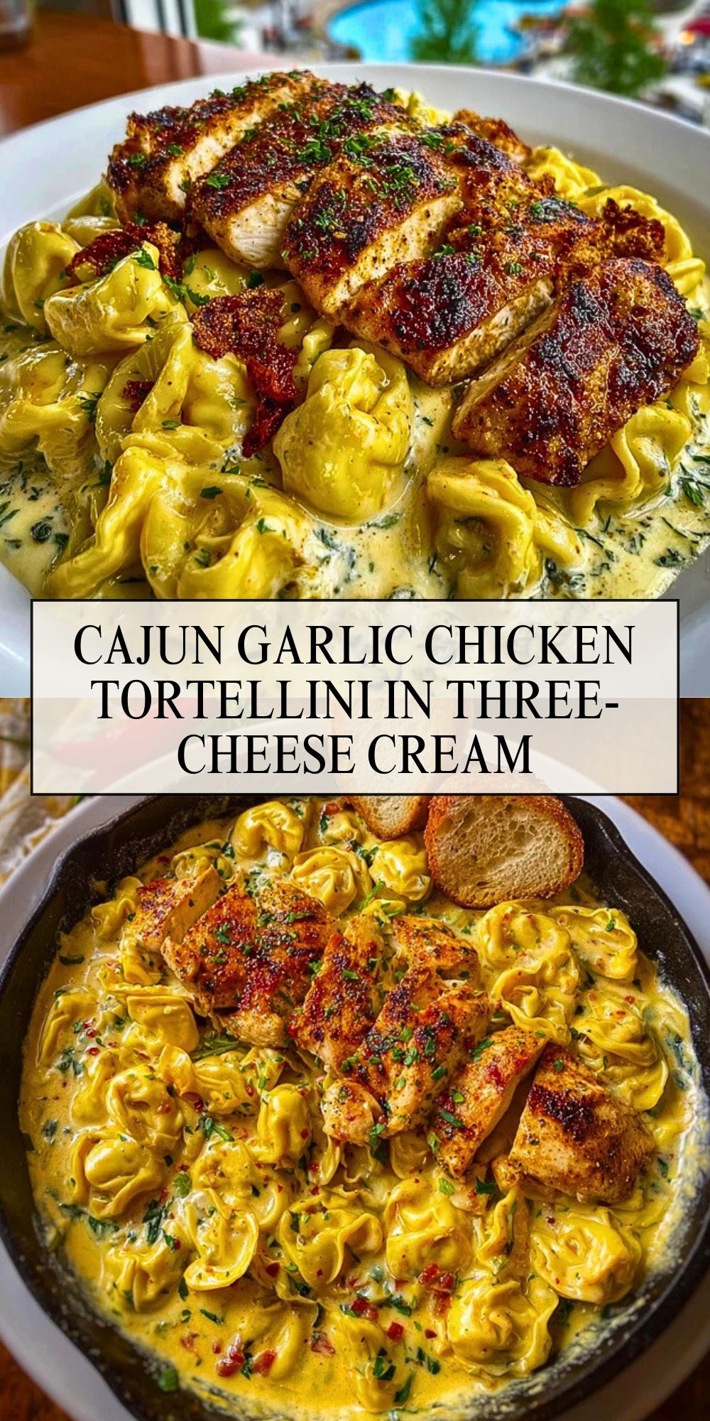 Spice meets comfort in this rich and creamy Cajun Garlic Chicken Tortellini. Tender, pan-seared Cajun chicken rests on pillowy cheese tortellini, all wrapped in a decadent three-cheese garlic cream sauce. Every bite is bursting with bold flavor and velvety texture, making this dish your next go-to for weeknight indulgence or cozy date nights at home.