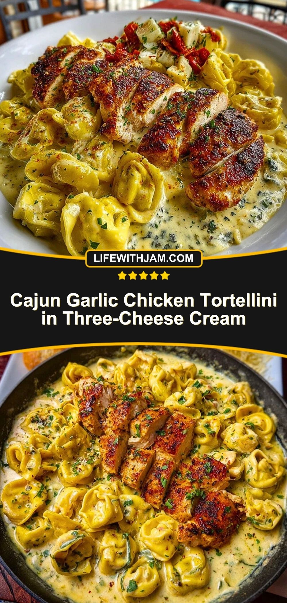 Cajun Garlic Chicken Tortellini in Three-Cheese Cream