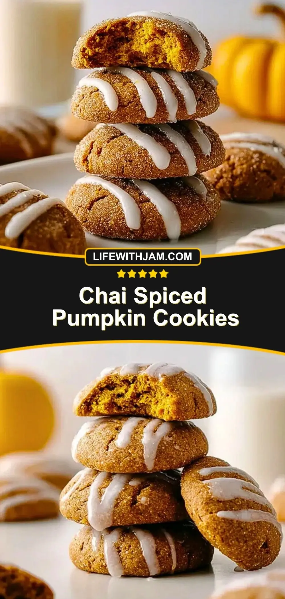 Chai Spiced Pumpkin Cookies are the ultimate fall treat—soft, warmly spiced, and kissed with a crunchy sugar crust. With pumpkin puree and a custom chai spice blend, they stay chewy and flavorful for days. Perfect for cozy afternoons, holiday gifting, or when you crave something sweet with your tea or coffee.