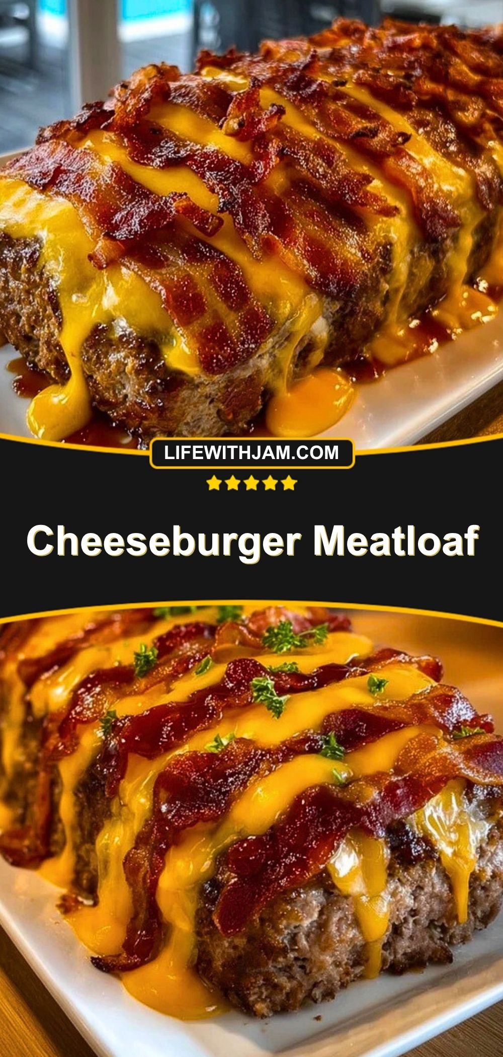 This Cheeseburger Meatloaf is a bold twist on the classic comfort food you know and love. It’s everything you love about a juicy cheeseburger—beefy, cheesy, bacon-loaded goodness—all baked into a hearty meatloaf. The top is drenched in melty cheddar and crisp bacon, making every slice a rich, savory bite.