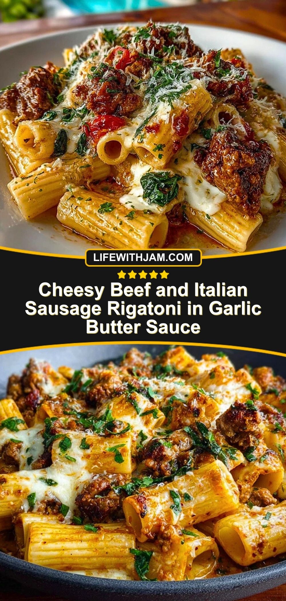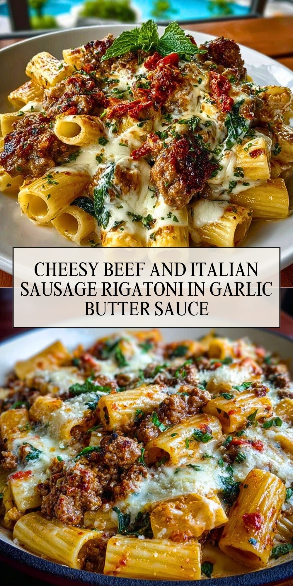 Cheesy Beef and Italian Sausage Rigatoni in Garlic Butter Sauce