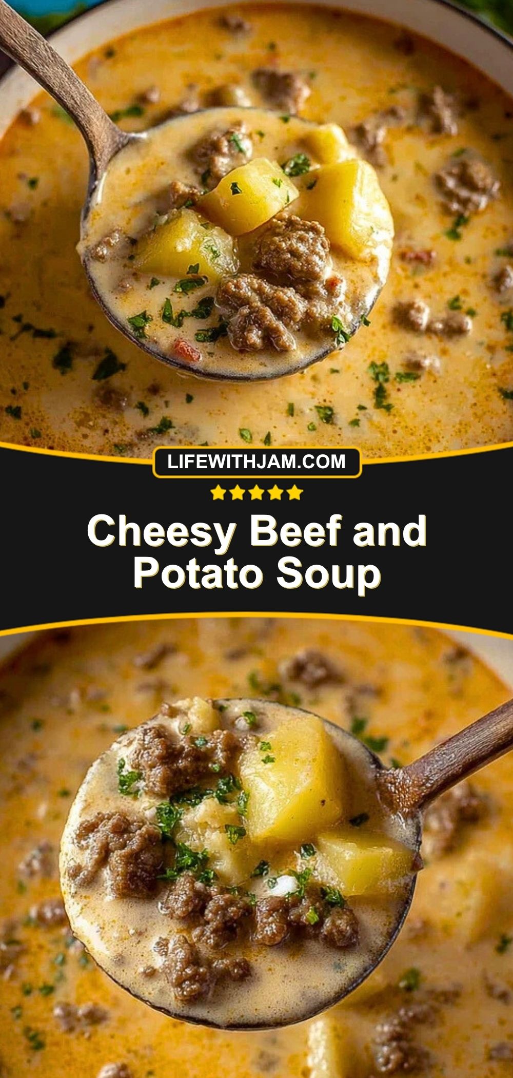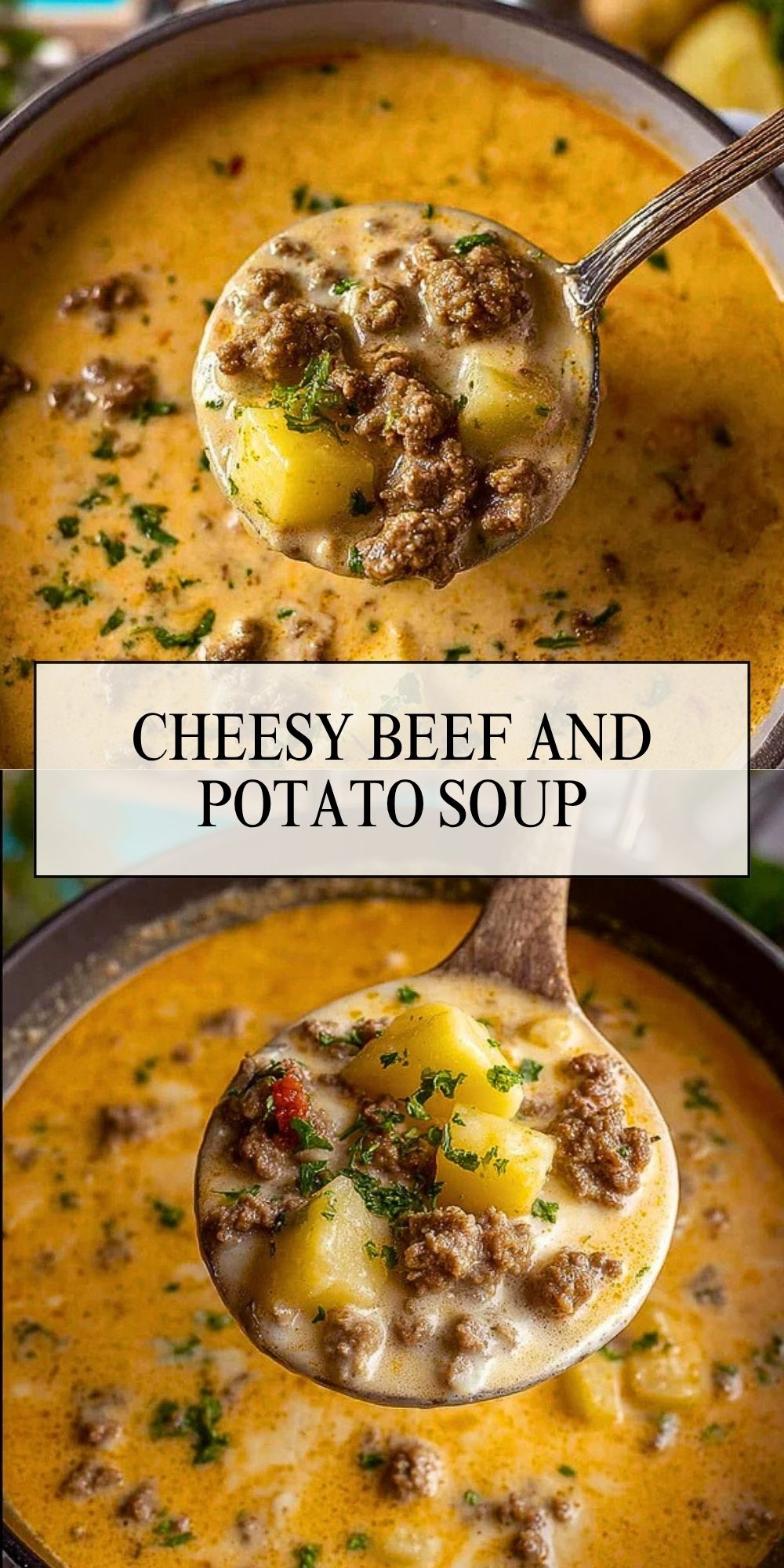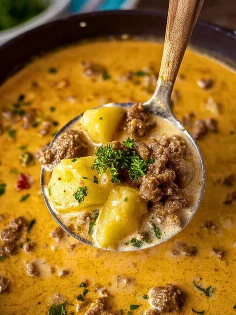Rich, hearty, and irresistibly cheesy—this Cheesy Beef and Potato Soup is comfort in a bowl. It’s the kind of cozy, stick-to-your-ribs meal that warms you up from the inside out, perfect for chilly evenings or when you just need something satisfying and soul-soothing. Each spoonful is packed with tender potatoes, savory ground beef, and a luxuriously creamy, cheesy broth that makes this soup a favorite for both kids and adults.