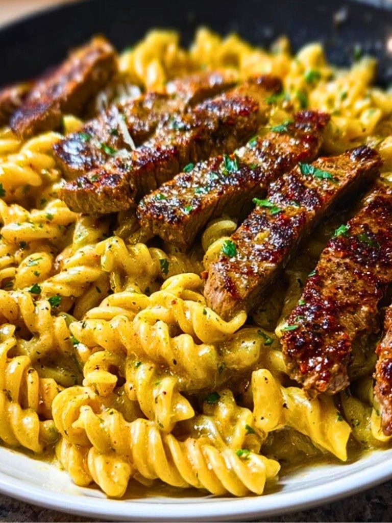 A bold and creamy pasta dish made with tender Cajun-seasoned steak, rich garlic Parmesan sauce, and rotini pasta that captures every bit of flavor. Perfect for a cozy dinner or to impress guests with minimal effort.