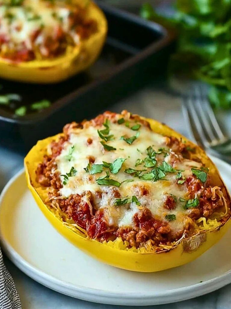 Look for medium-sized spaghetti squash that feel heavy for their size and have firm, unblemished yellow skin. Avoid any with soft spots or green patches. A 2.5 to 3-pound squash is ideal for halving and stuffing like little boats. Organic squash is great if available, but not required—the flavor comes from the roasting and the layers of delicious toppings.