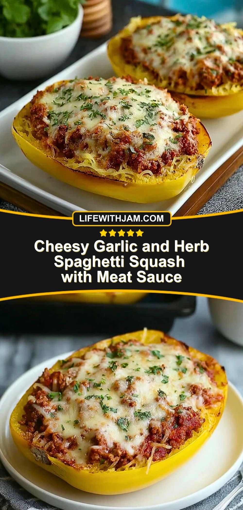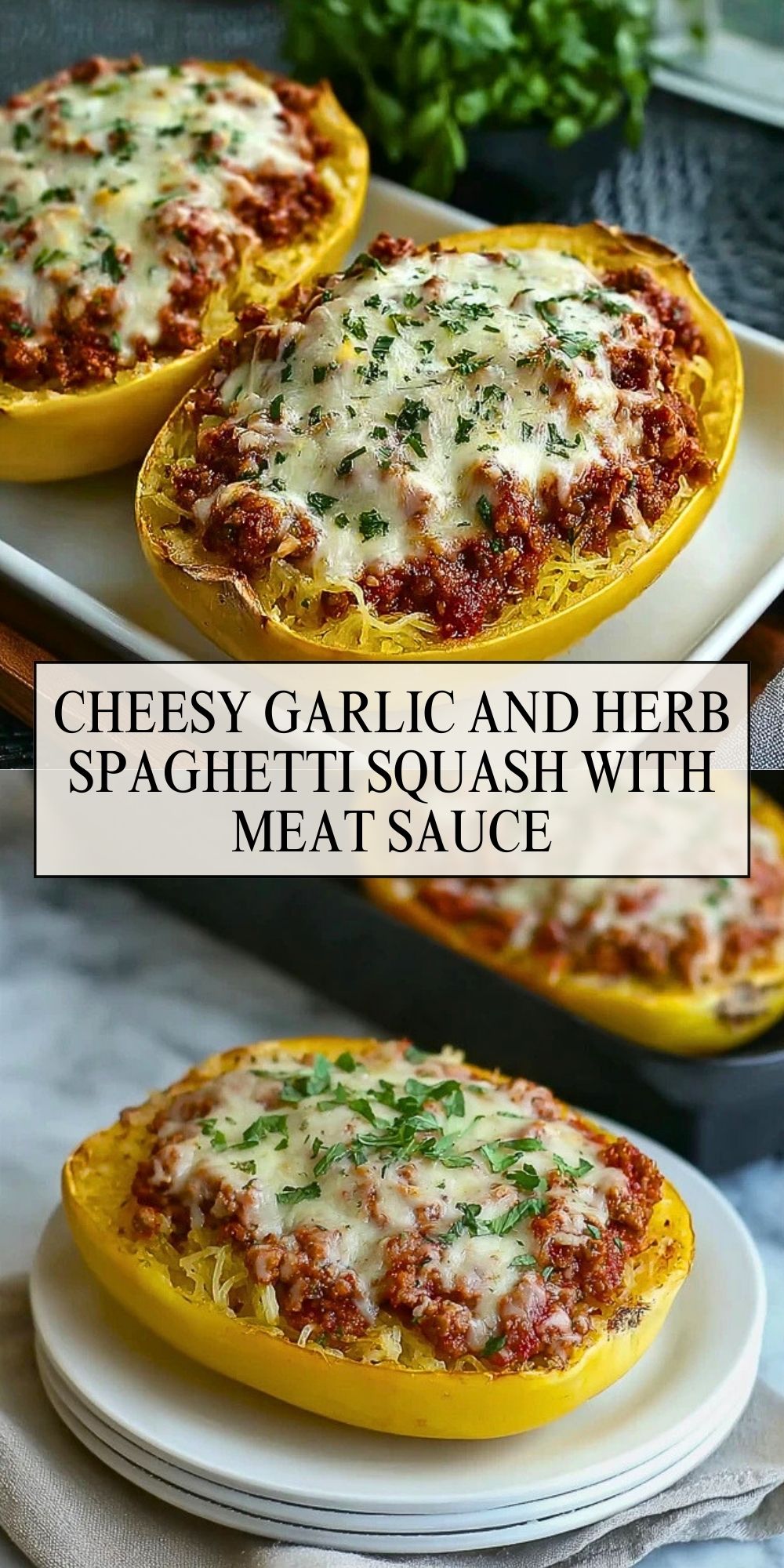 Cheesy Garlic and Herb Spaghetti Squash with Meat Sauce