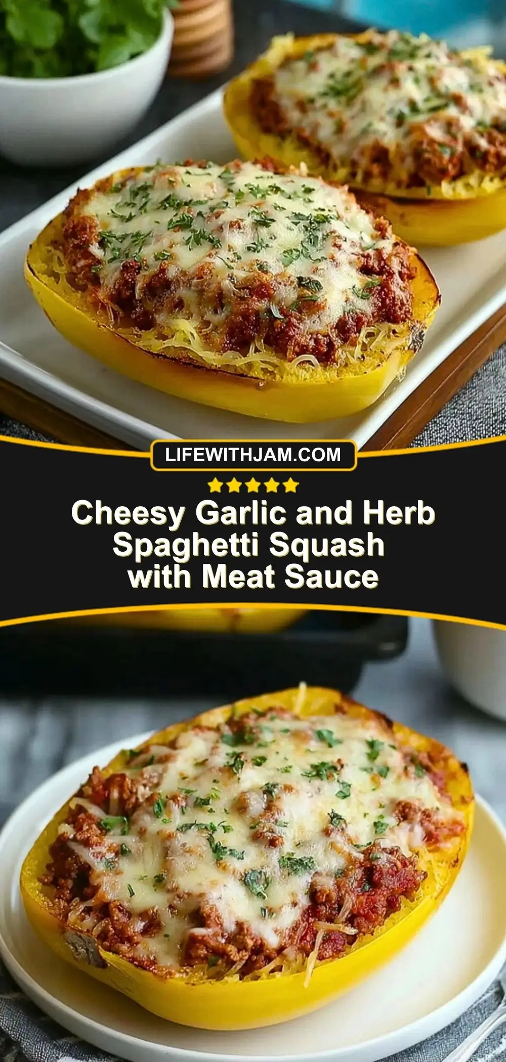 Cheesy Garlic and Herb Spaghetti Squash with Meat Sauce