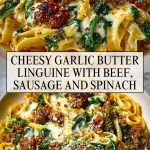 Cheesy Garlic Butter Linguine with Beef, Sausage and Spinach