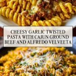Cheesy Garlic Twisted Pasta with Cajun Ground Beef and Alfredo Velveeta