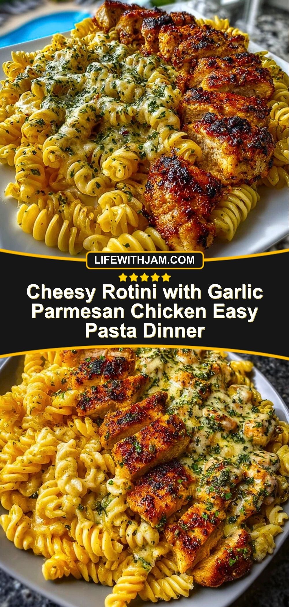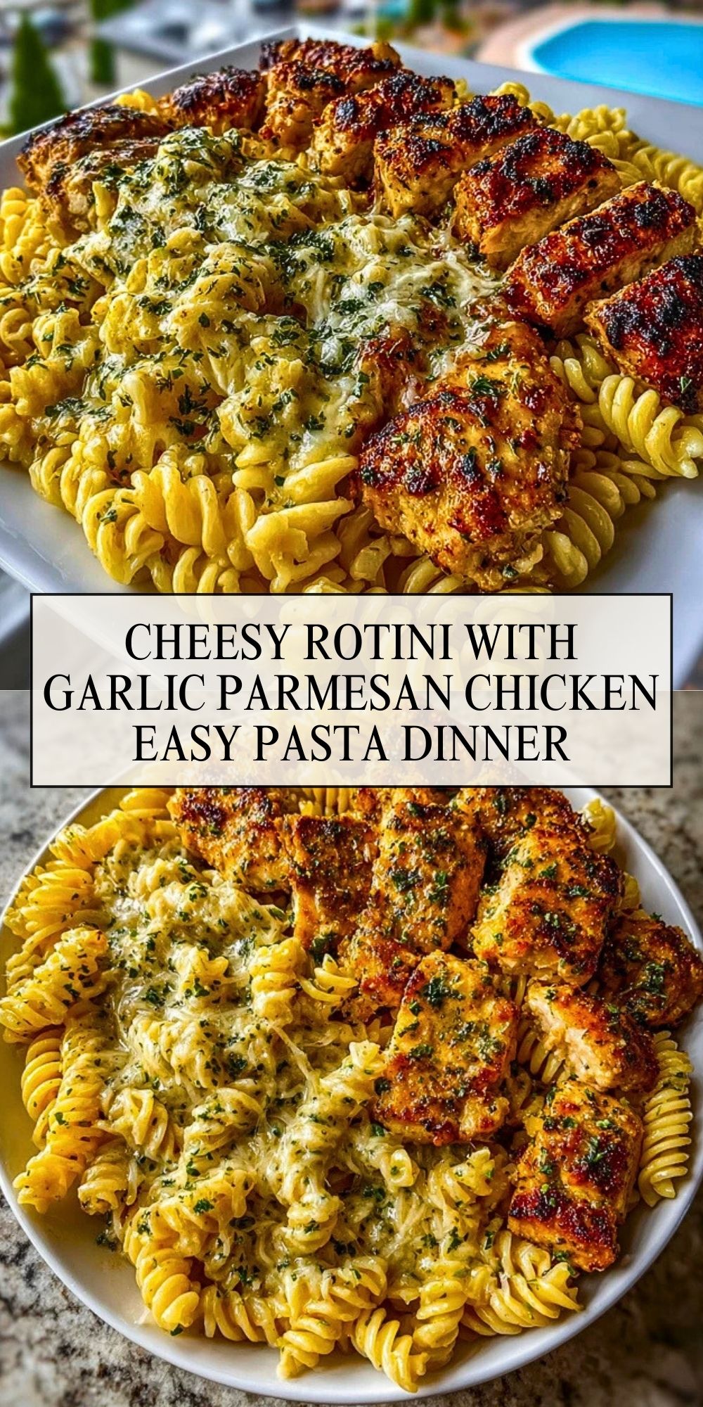 Cheesy Rotini with Garlic Parmesan Chicken Easy Pasta Dinner
