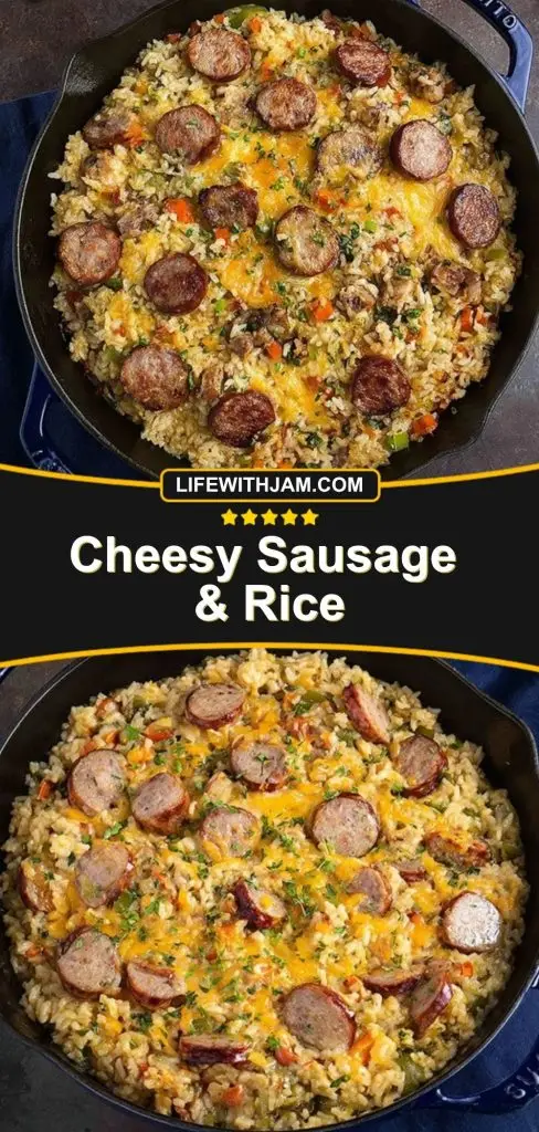 Keywords: Cheesy sausage and rice, one-pan dinner, skillet meal