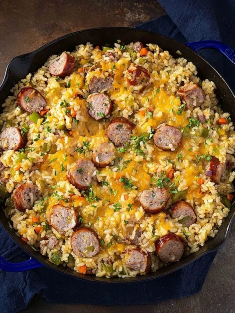 Cheesy Sausage & Rice is a one-skillet wonder that blends smoky sausage, colorful vegetables, and creamy rice into a cozy, cheesy meal that’s perfect for weeknights. It’s hearty, full of flavor, and comes together in under 45 minutes—all in one pan!