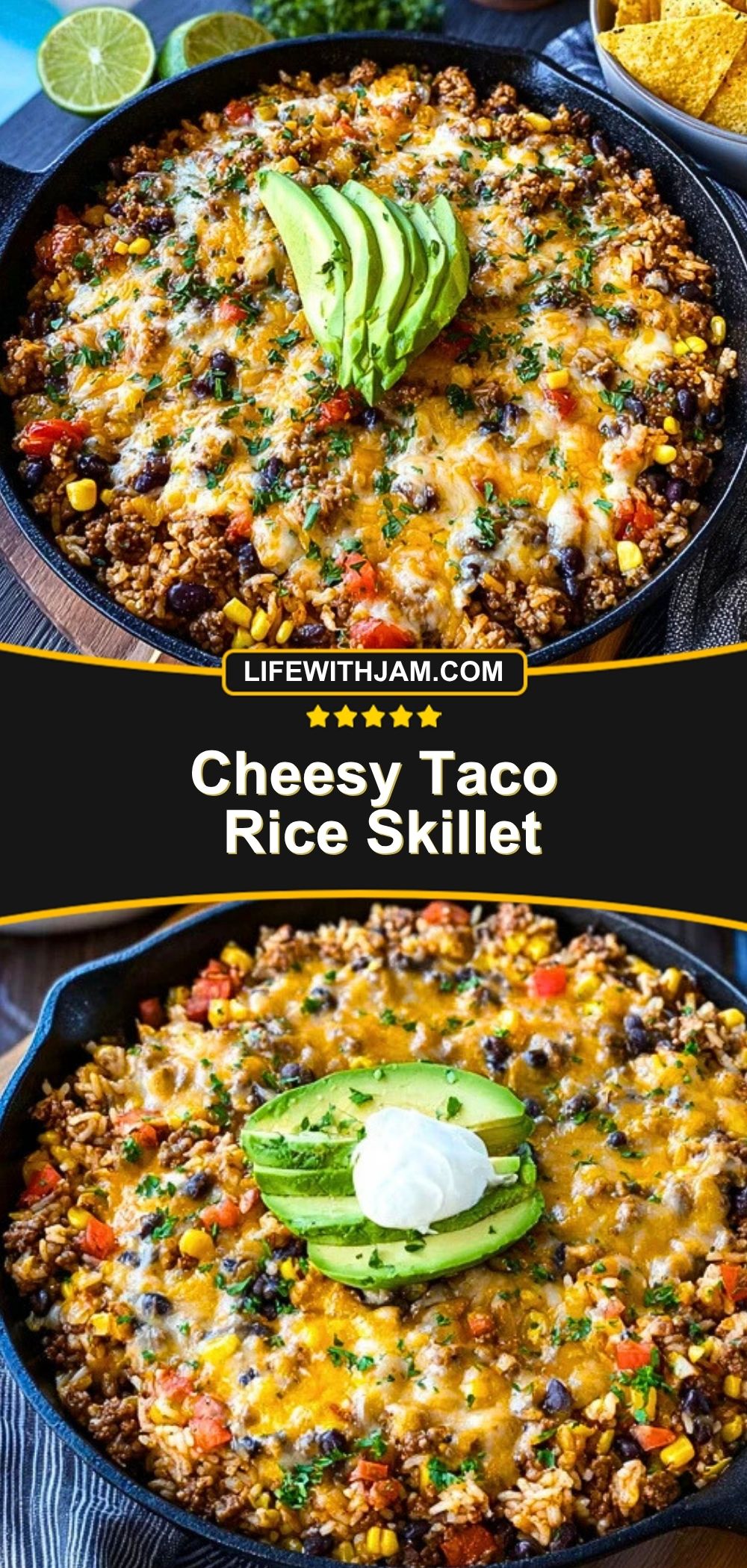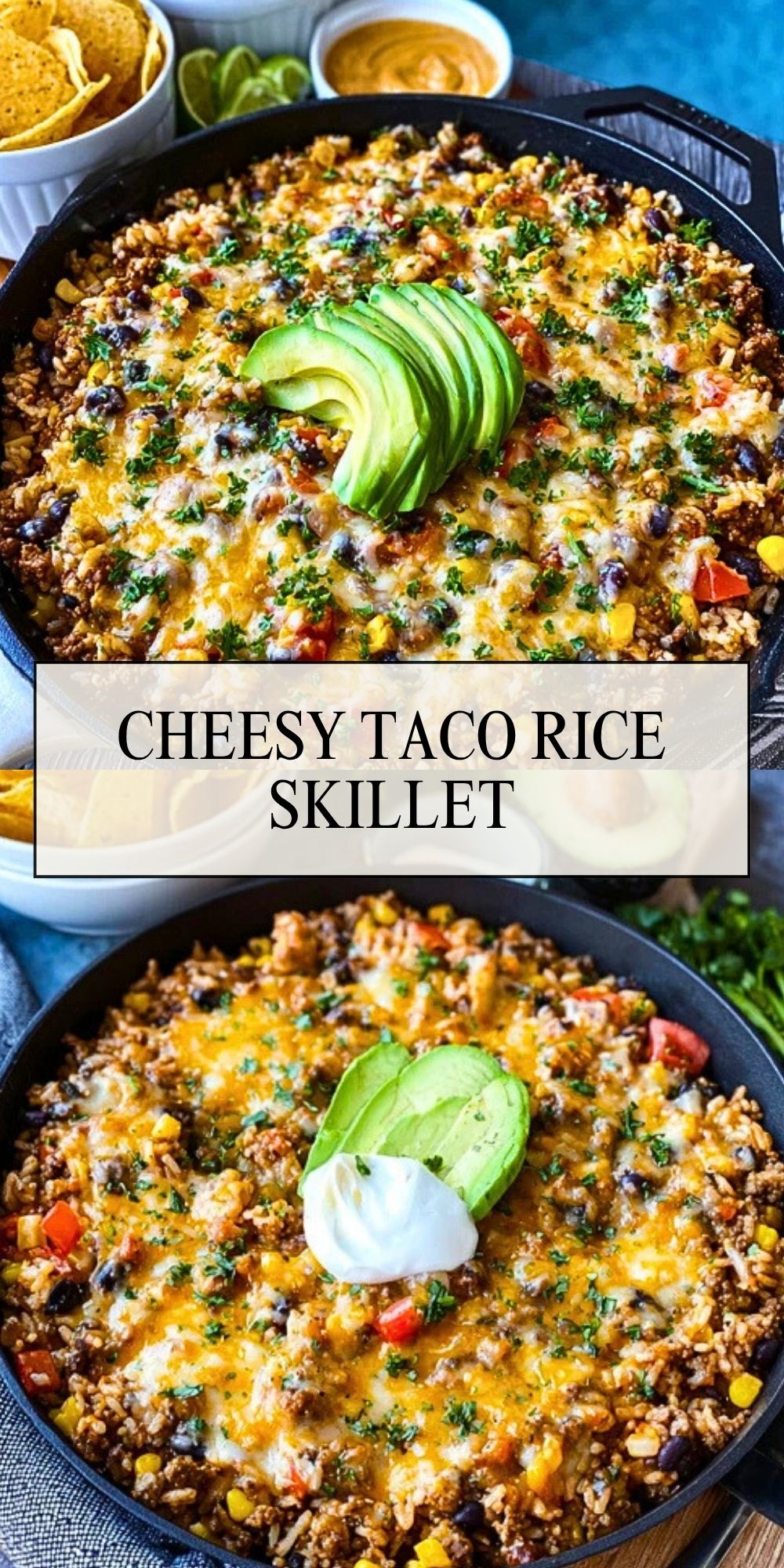 This Cheesy Taco Rice Skillet is the ultimate one-pan dinner! Loaded with seasoned ground beef, fluffy rice, veggies, beans, and melted cheese, it’s a hearty, comforting meal the whole family will love. Customize with your favorite toppings and enjoy Tex-Mex flavor without the fuss.