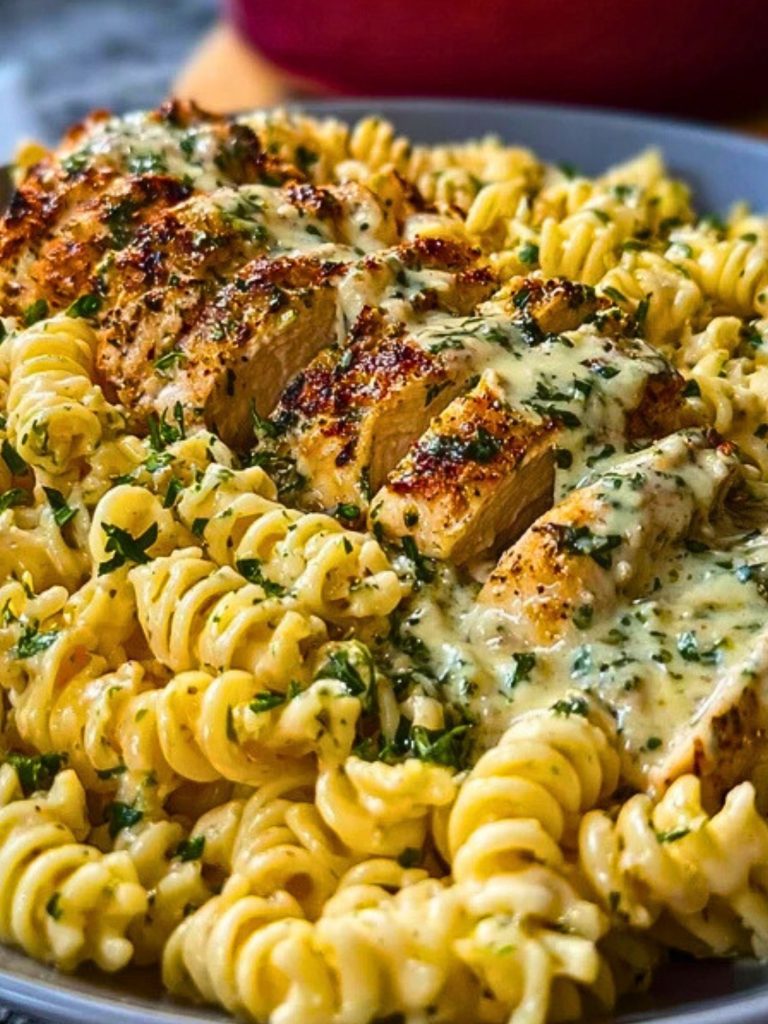 The garlic Parmesan sauce is rich yet balanced, coating every spiral of pasta with flavor, while the chicken brings the perfect hint of spice and sear. Whether you’re feeding your family or looking to impress guests, this dish hits all the right notes—cheesy, creamy, savory, and totally satisfying.