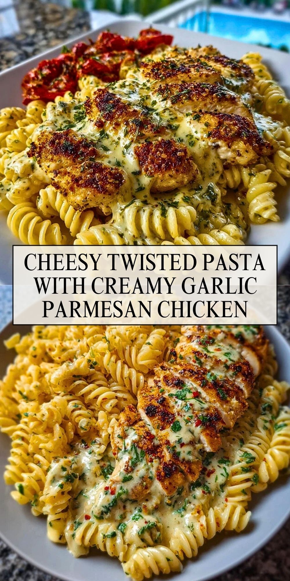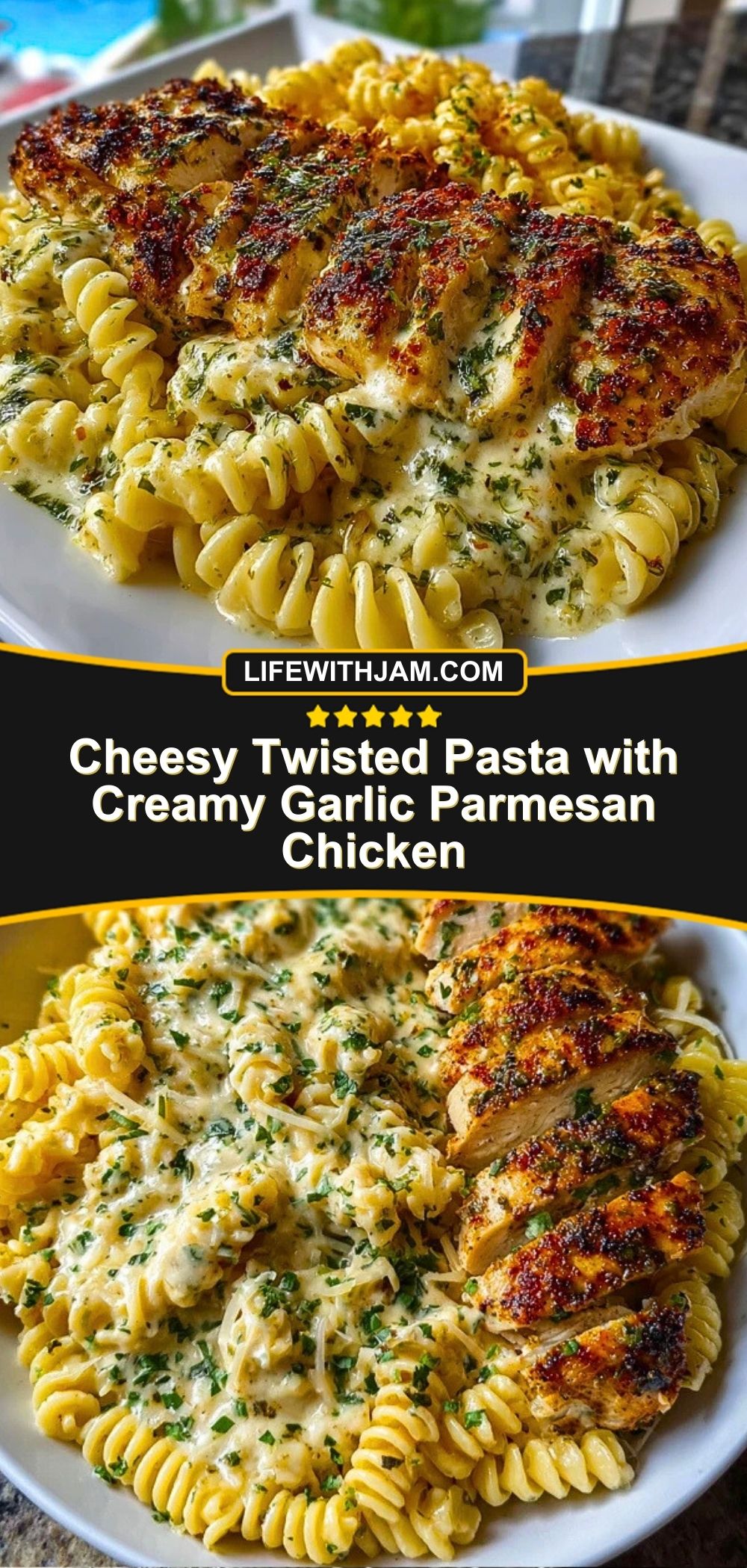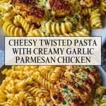Cheesy Twisted Pasta with Creamy Garlic Parmesan Chicken