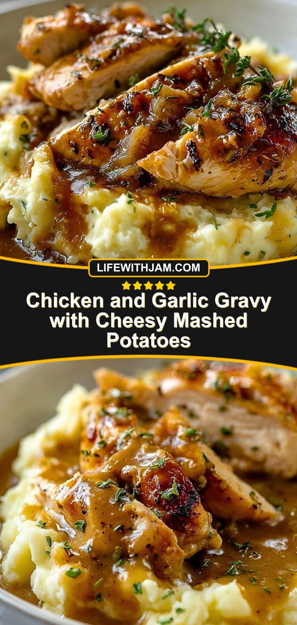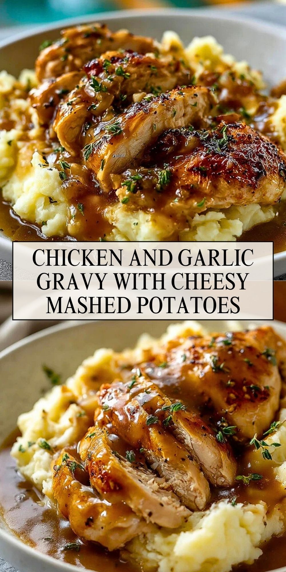 Chicken and Garlic Gravy with Cheesy Mashed Potatoes