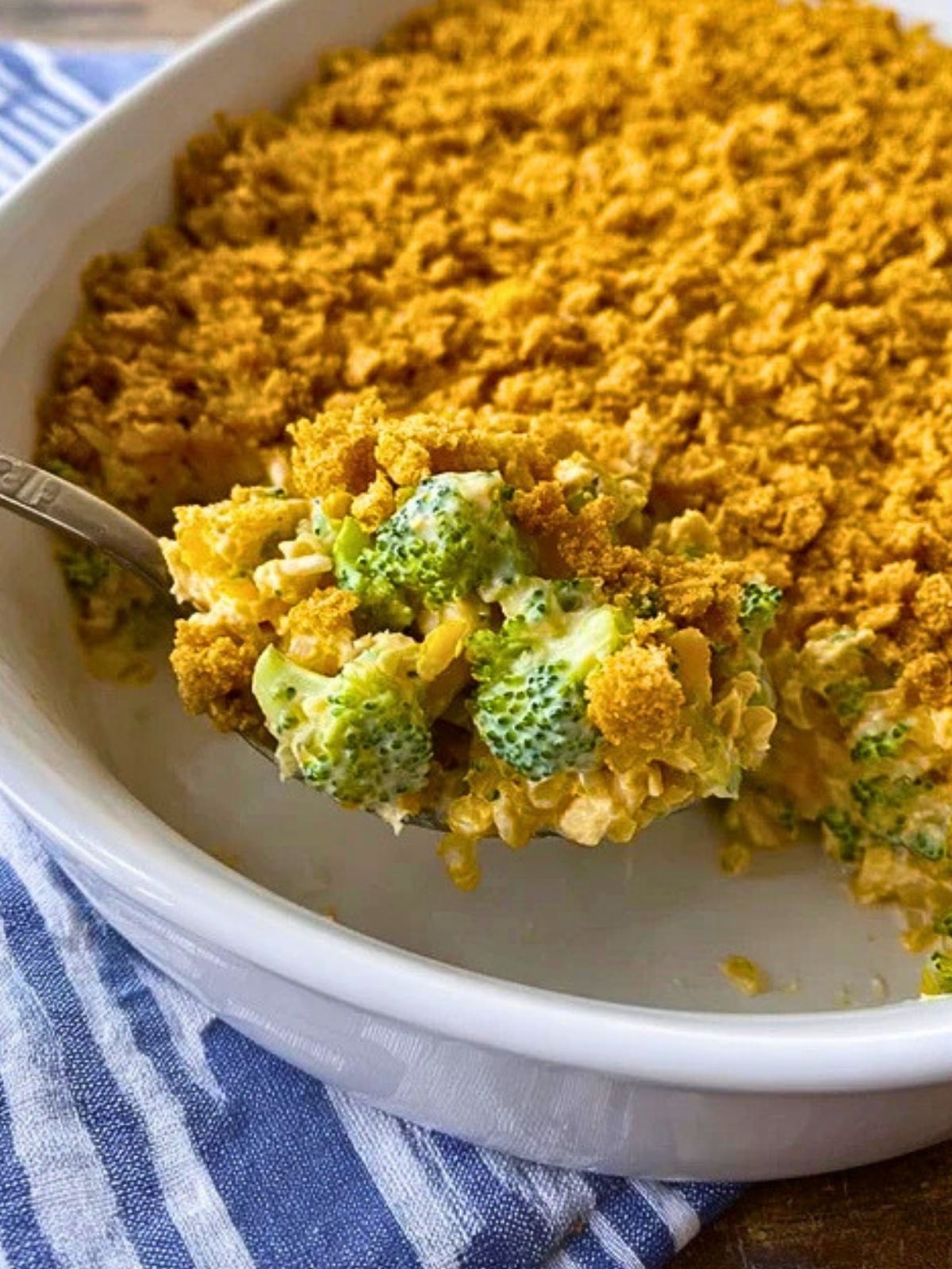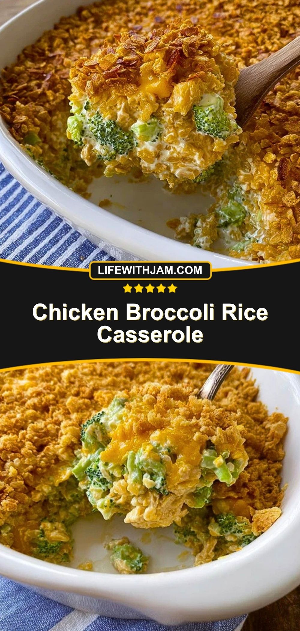 Creamy, cheesy, and topped with a golden crunch — this Chicken Broccoli Rice Casserole is the definition of cozy comfort food. It’s the perfect make-ahead dinner for busy weeknights or a simple crowd-pleaser for potlucks. With tender chunks of chicken, bright green broccoli florets, and fluffy rice all baked together in a creamy sauce, this dish is hearty and wholesome without being fussy.