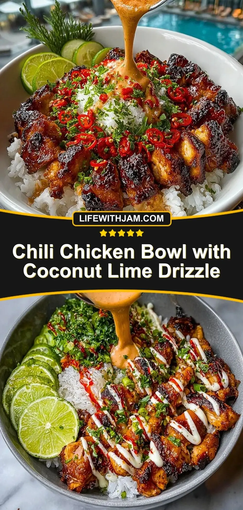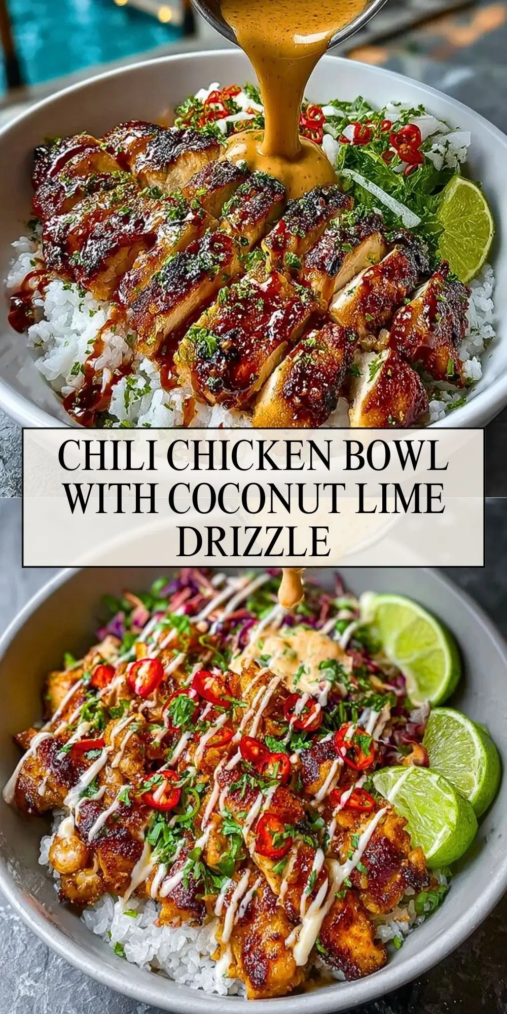 This Chili Chicken Bowl with Coconut Lime Drizzle is a vibrant, flavor-packed meal that balances the heat of chili-seasoned chicken with the cool, creamy freshness of coconut and lime. Perfect for busy weeknights or meal prepping, this dish delivers a burst of tropical zest in every bite.