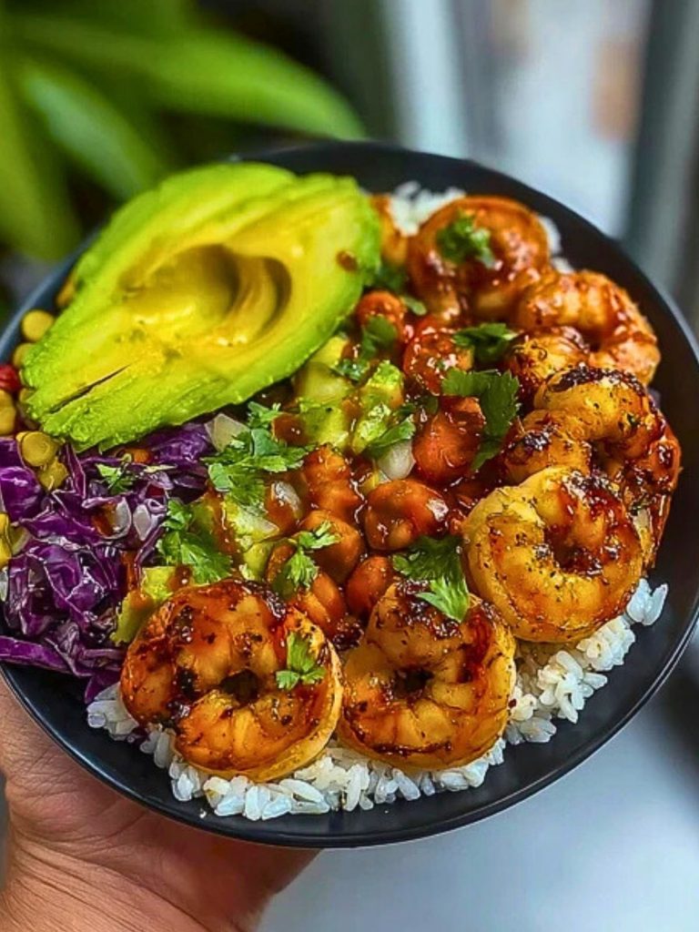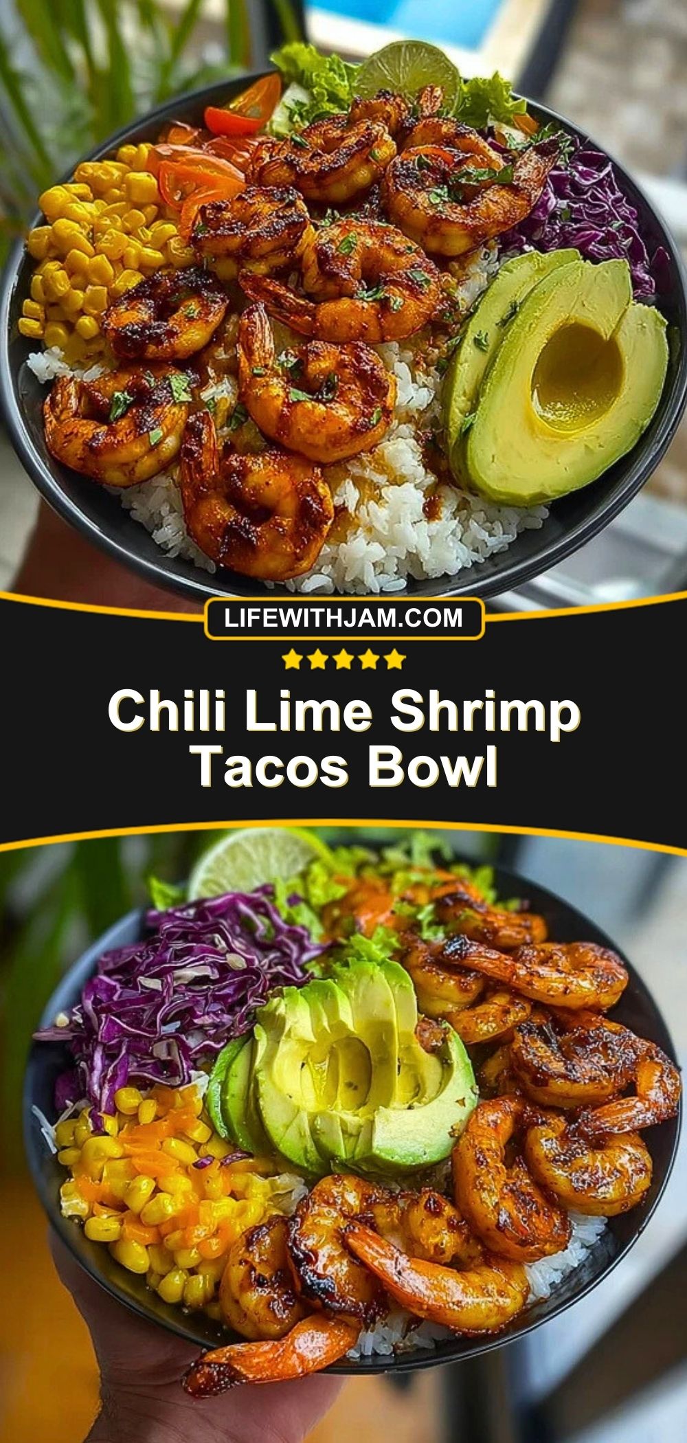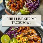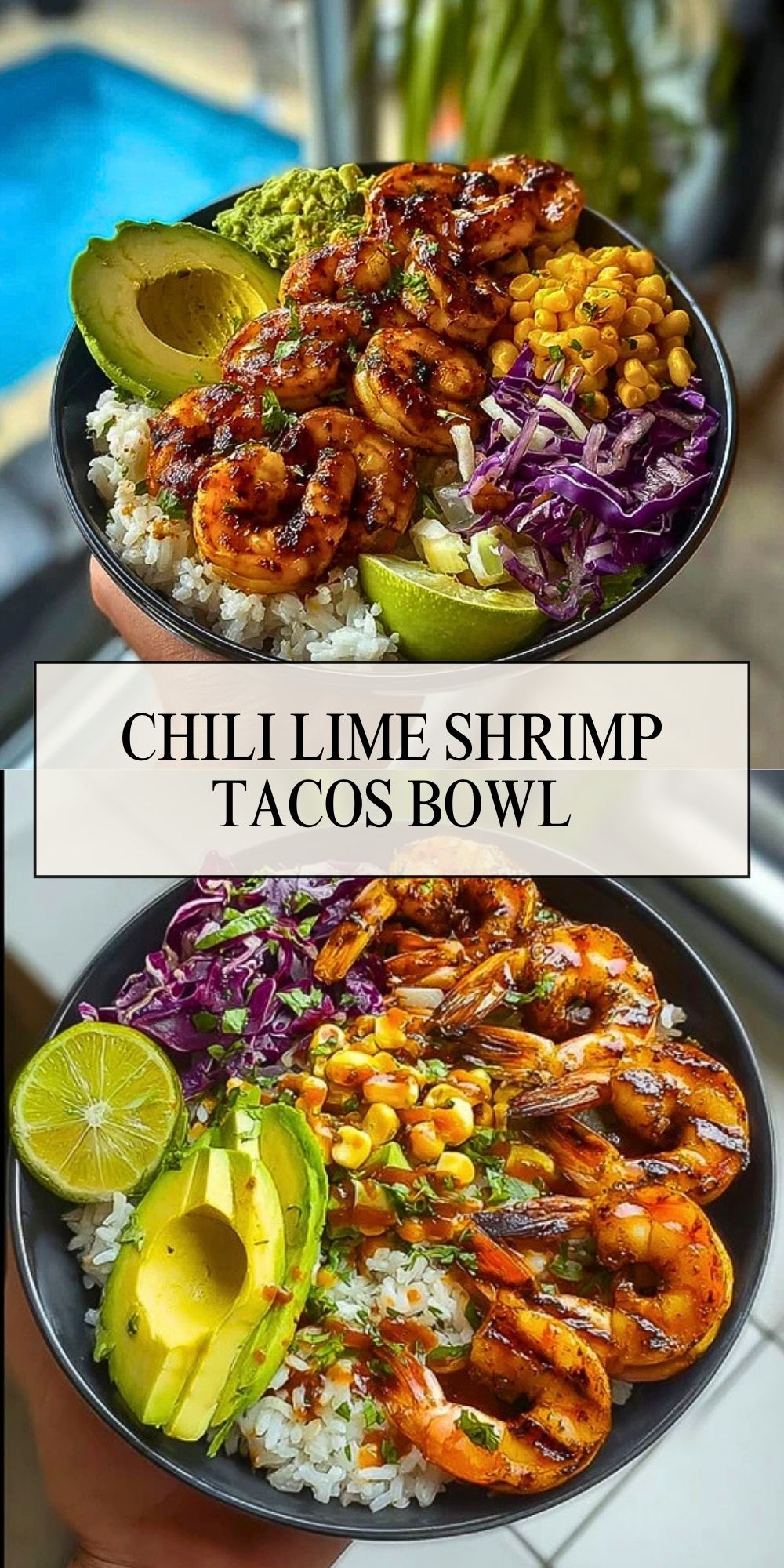 This Chili Lime Shrimp Tacos Bowl combines zesty, sautéed shrimp with a bed of rice and crisp, colorful toppings like cabbage, beans, and avocado. Finished with a tangy sauce and fresh cilantro, it’s a vibrant, high-flavor meal that’s perfect for quick dinners or meal prep.