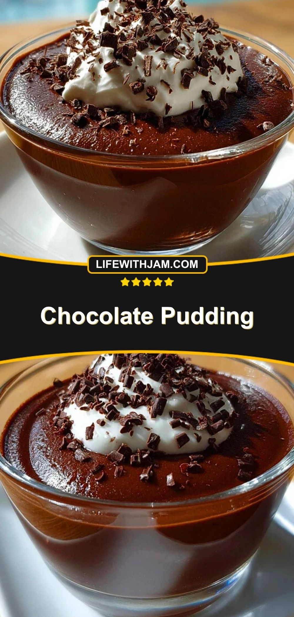 Chocolate pudding is best served chilled, topped with a dollop of freshly whipped cream and a sprinkle of chocolate shavings or curls. For a more indulgent experience, you can also layer it with crushed cookies or serve it parfait-style in glass cups. It’s elegant enough for dinner parties but cozy enough for weekday desserts.