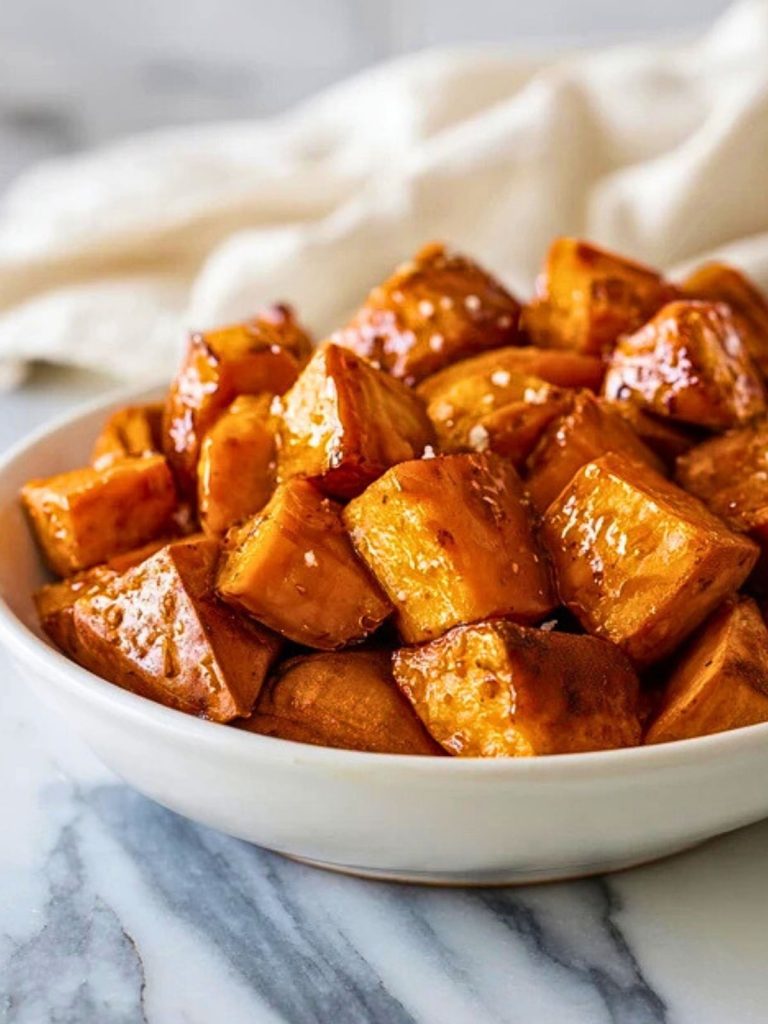 These sweet potatoes are best served warm straight from the oven. Garnish with a sprinkle of flaky sea salt or fresh herbs like rosemary or thyme for contrast. They’re perfect alongside roasted turkey, glazed ham, grilled chicken, or even as a hearty vegetarian main.