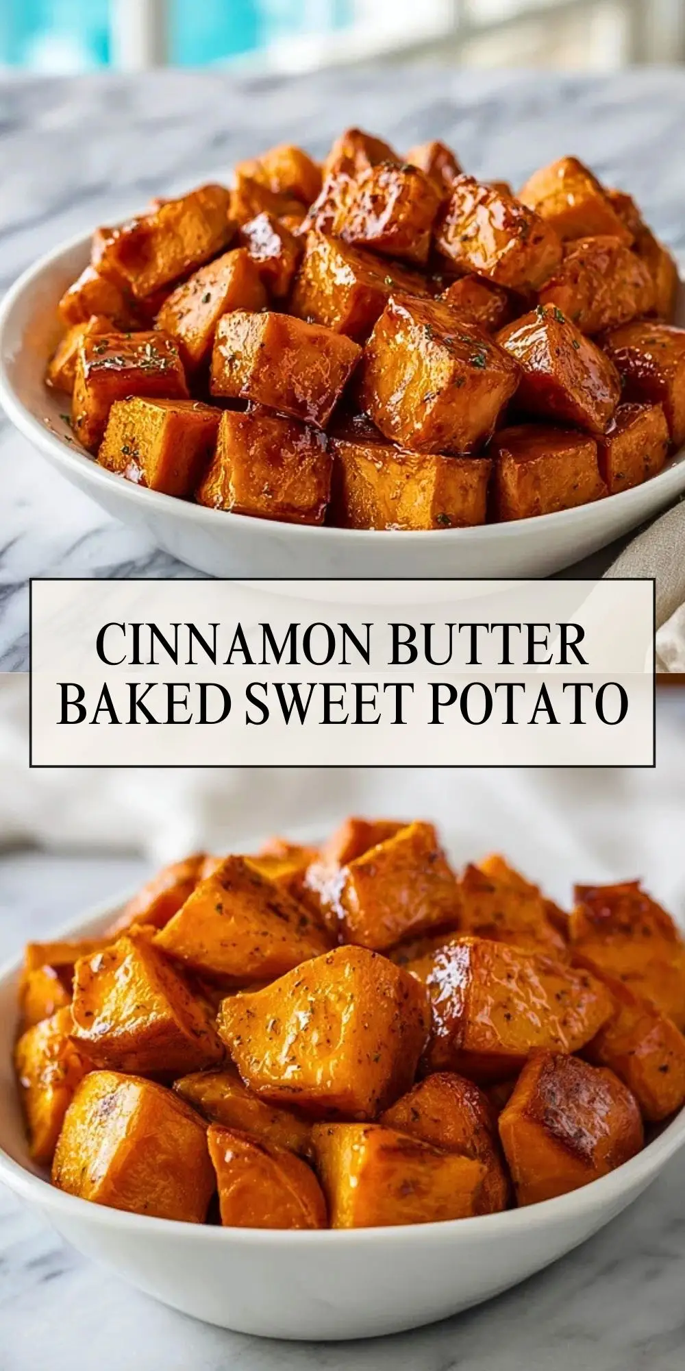 These Cinnamon Butter Baked Sweet Potatoes are oven-roasted to caramelized perfection, glazed in a buttery brown sugar cinnamon sauce, and make the coziest side dish for any meal. Sweet, spiced, and ultra-satisfying.
